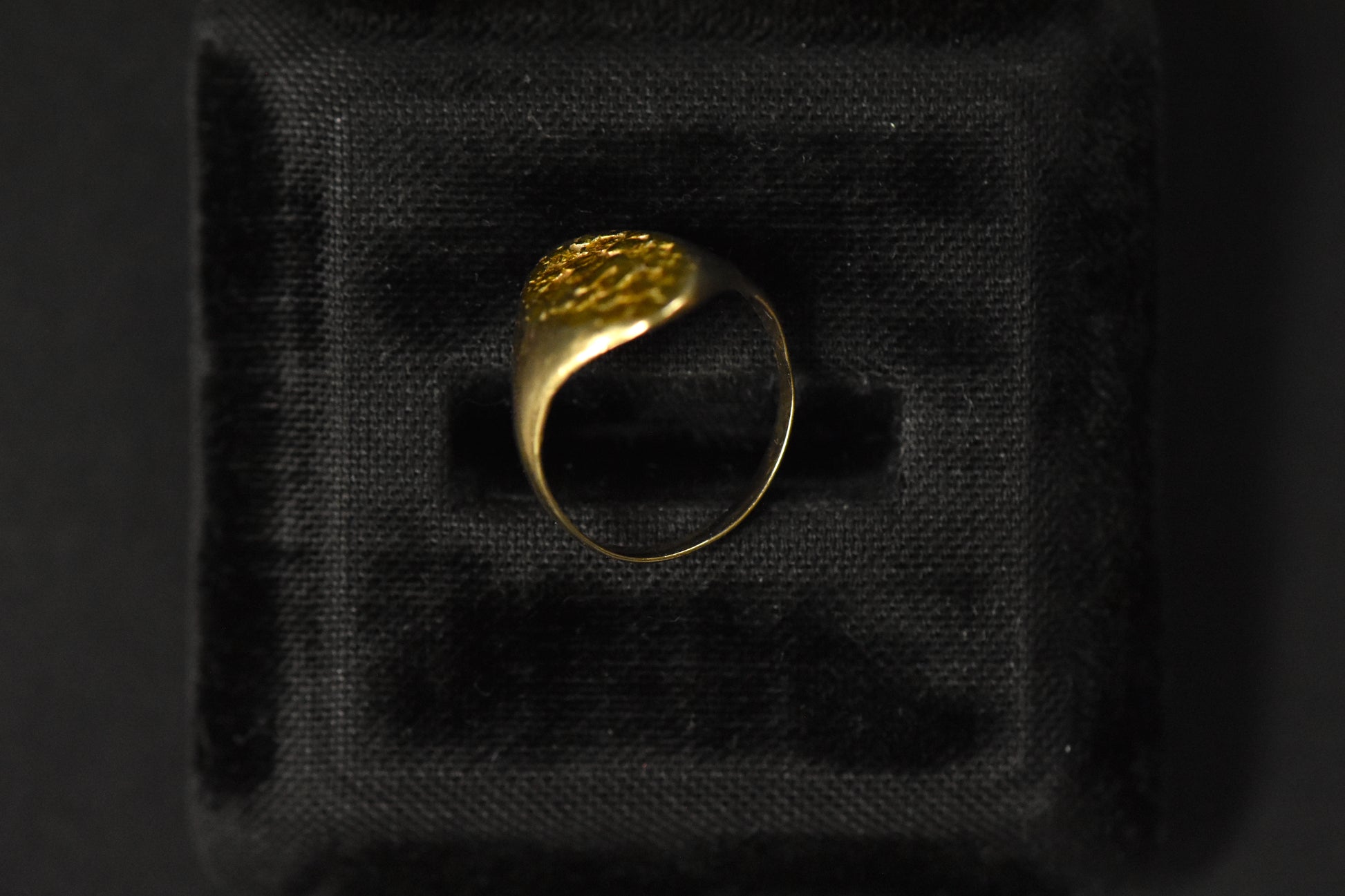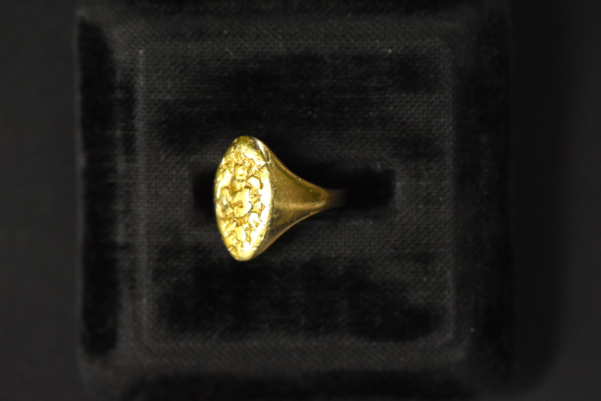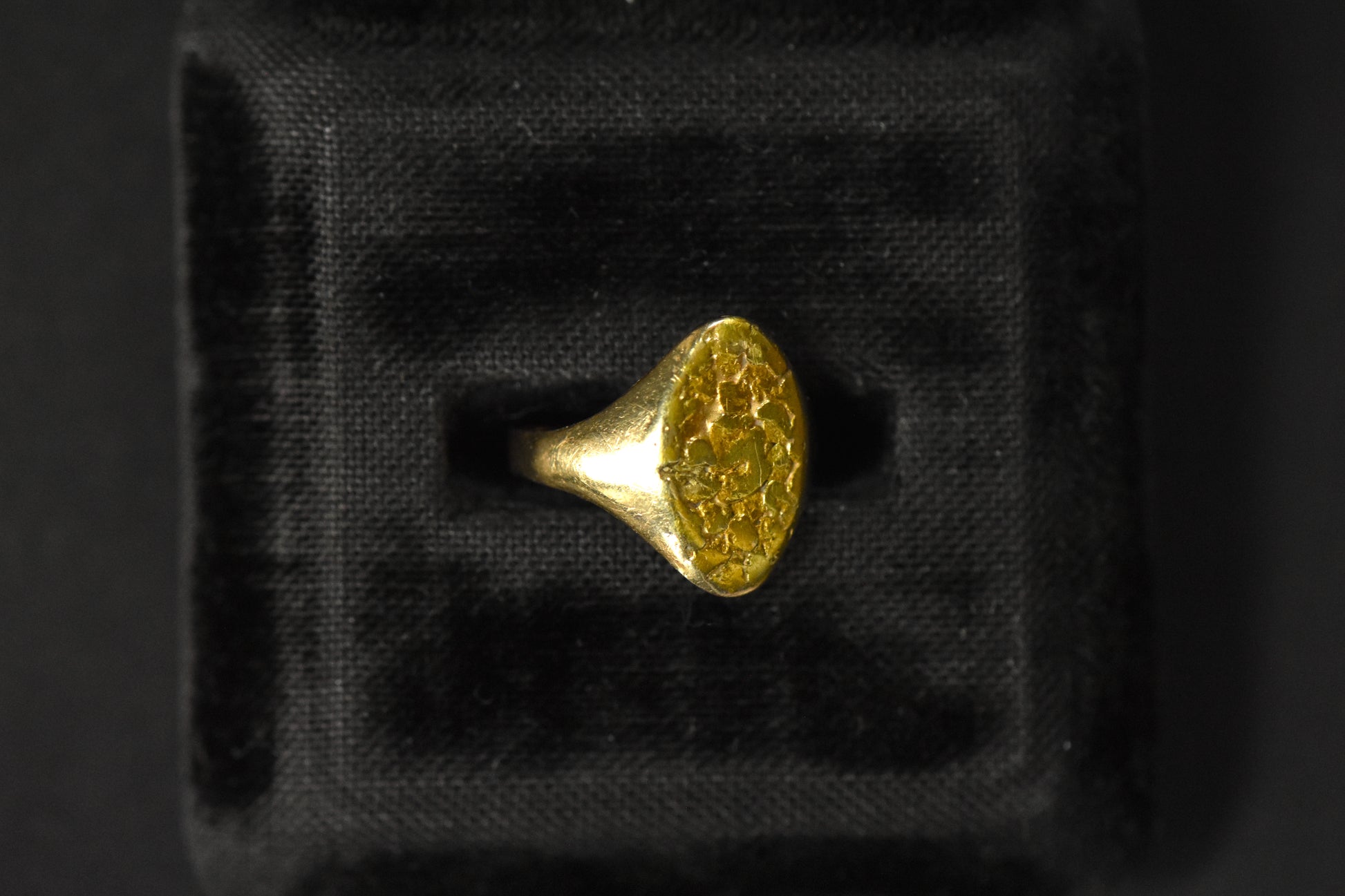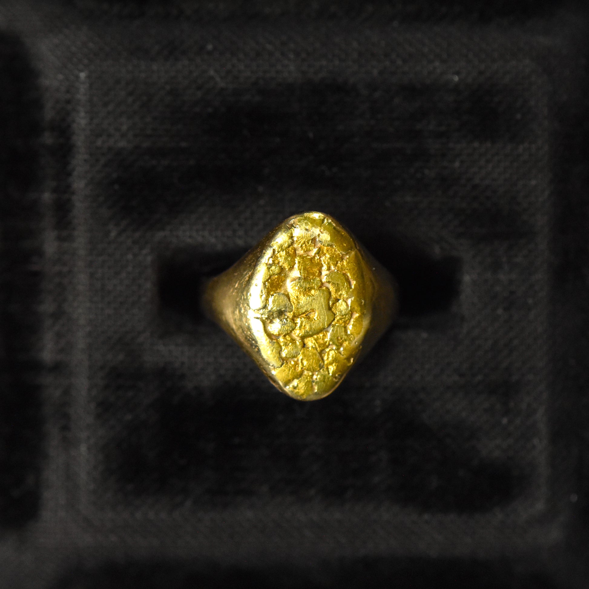 Perfect the pinky ring with this small size plaque ring with rich-colored high-karat nuggets. But yes, it can be sized up if you have a different finger in mind.