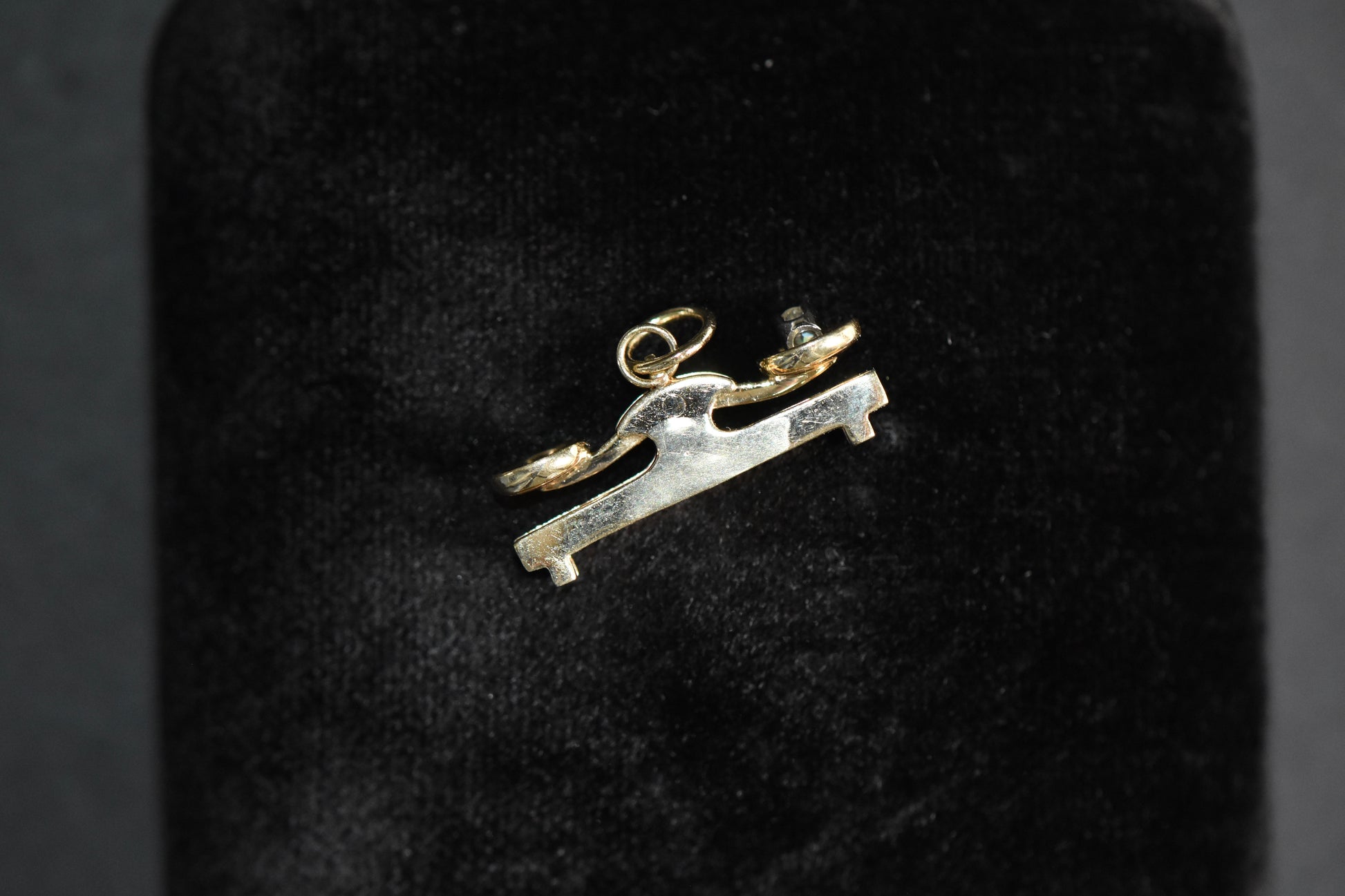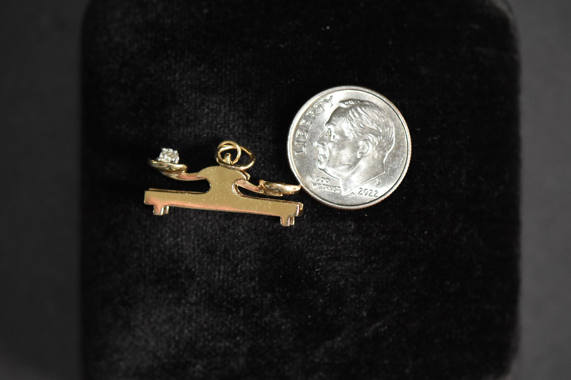 Vintage kinetic functioning diamond scale with a diamond, converted from a stick pin, and crafted in 14K yellow gold.