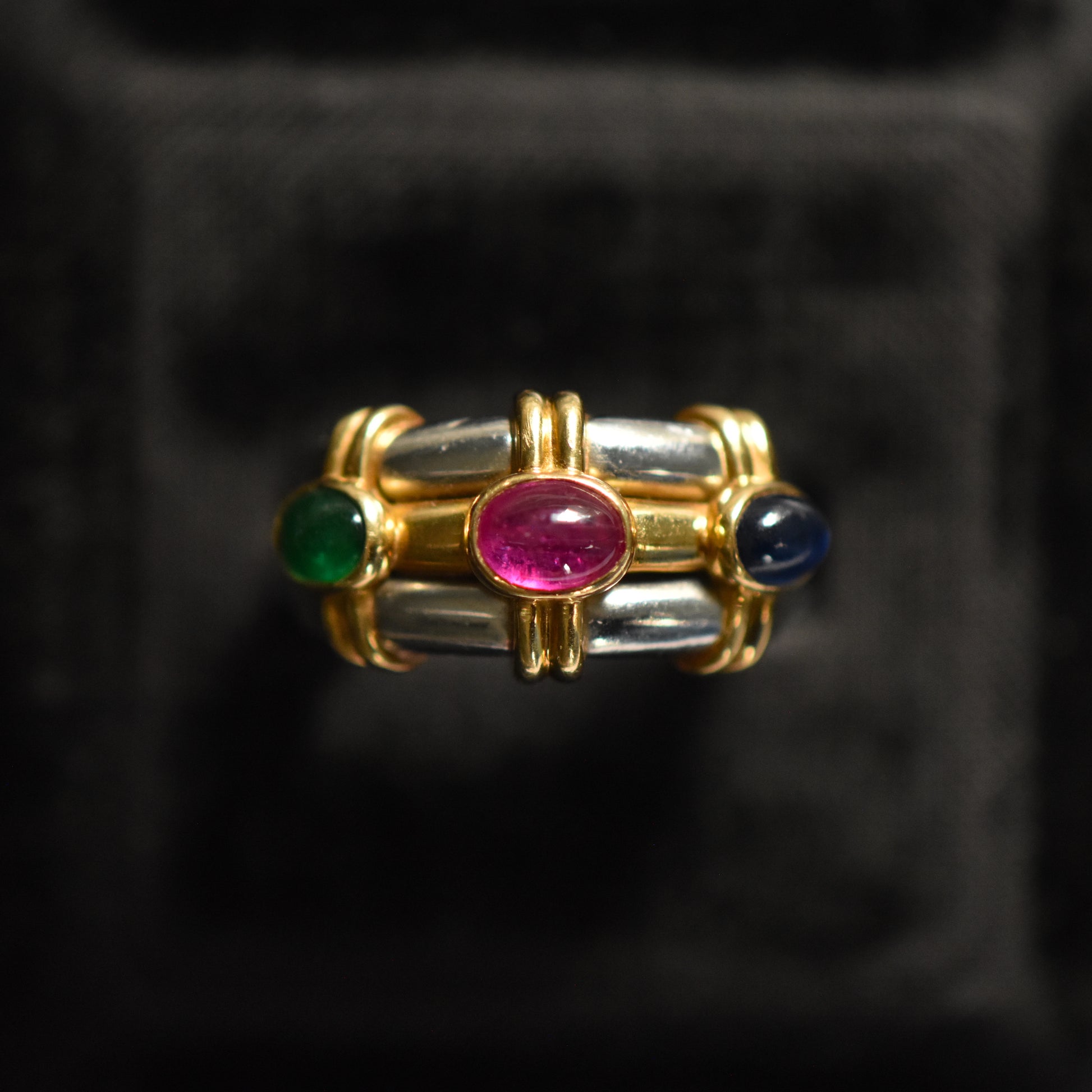 Incredible, bold, heavy, Designer signed, BVLGARI ring. This ring has a little bit of EVERYTHING: mixed metals, multiple colors of precious stones, feminine but robust... It's got it going ON.