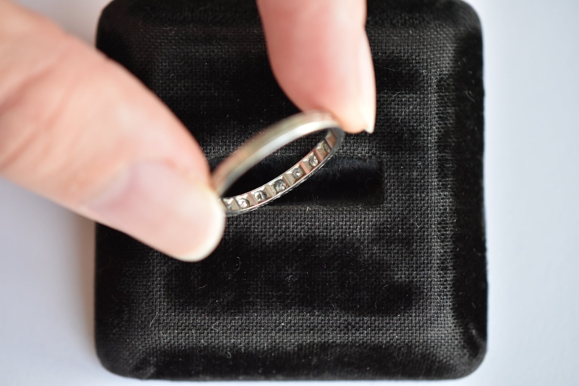 Antique Art Deco Multi Diamond Half Eternity Band with Floral Detailing