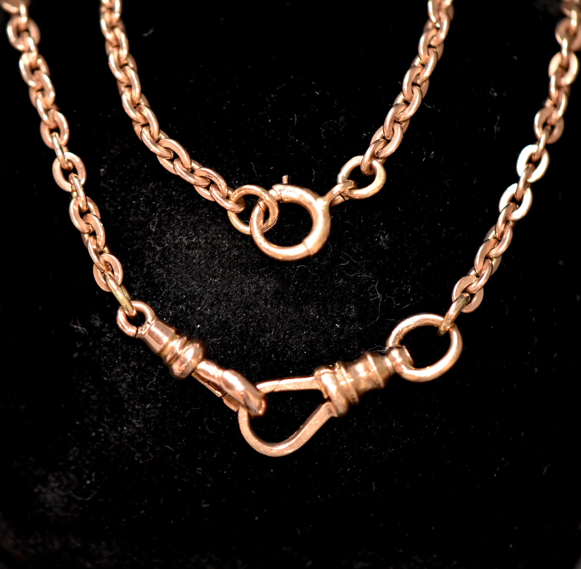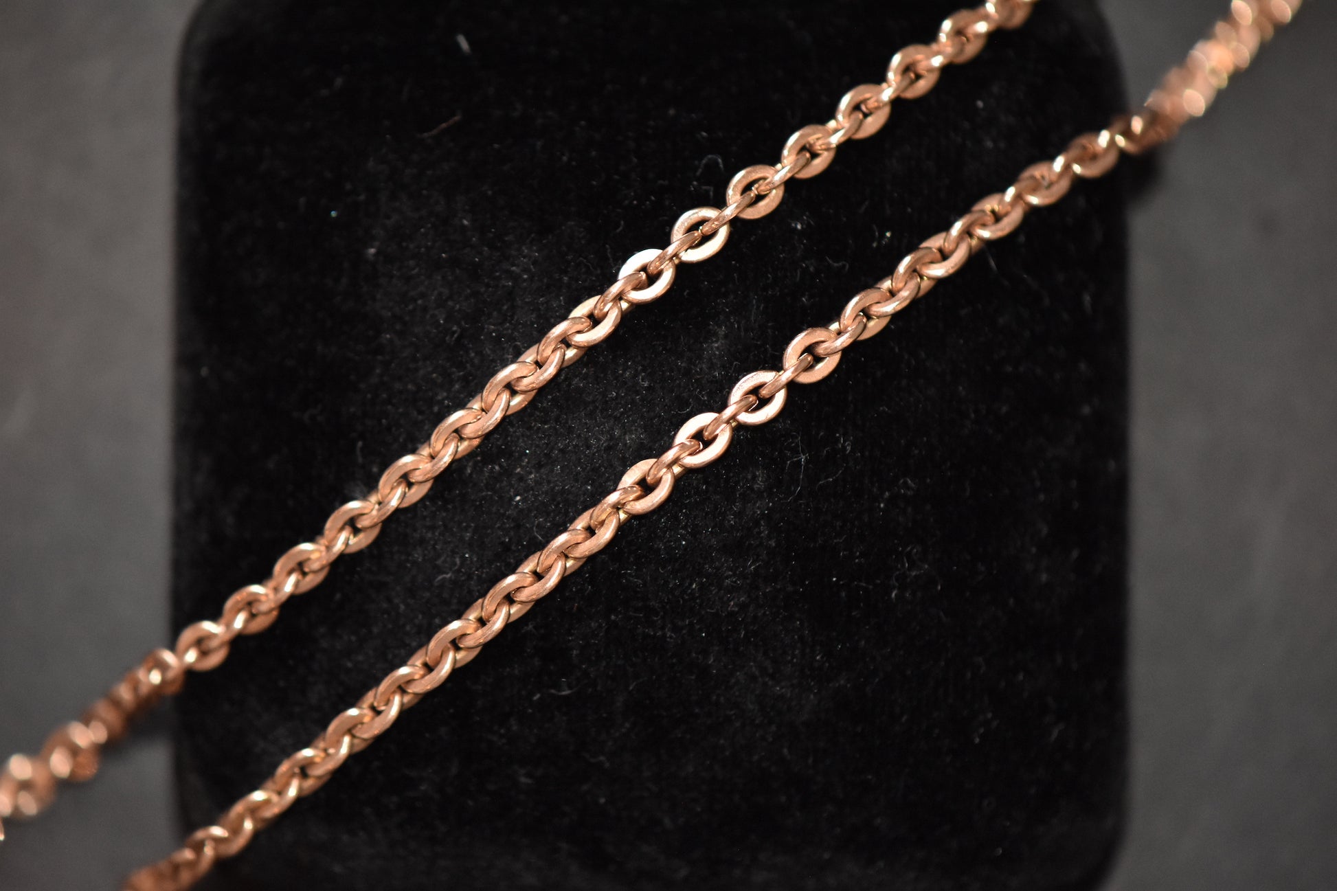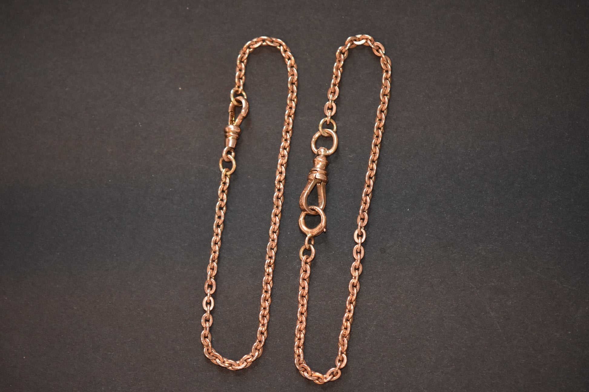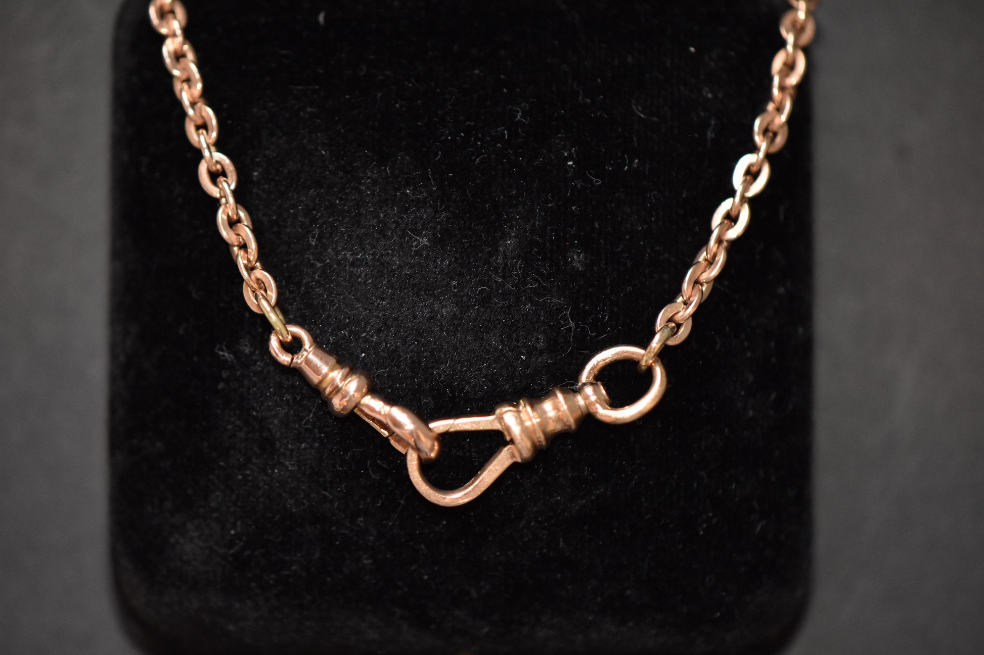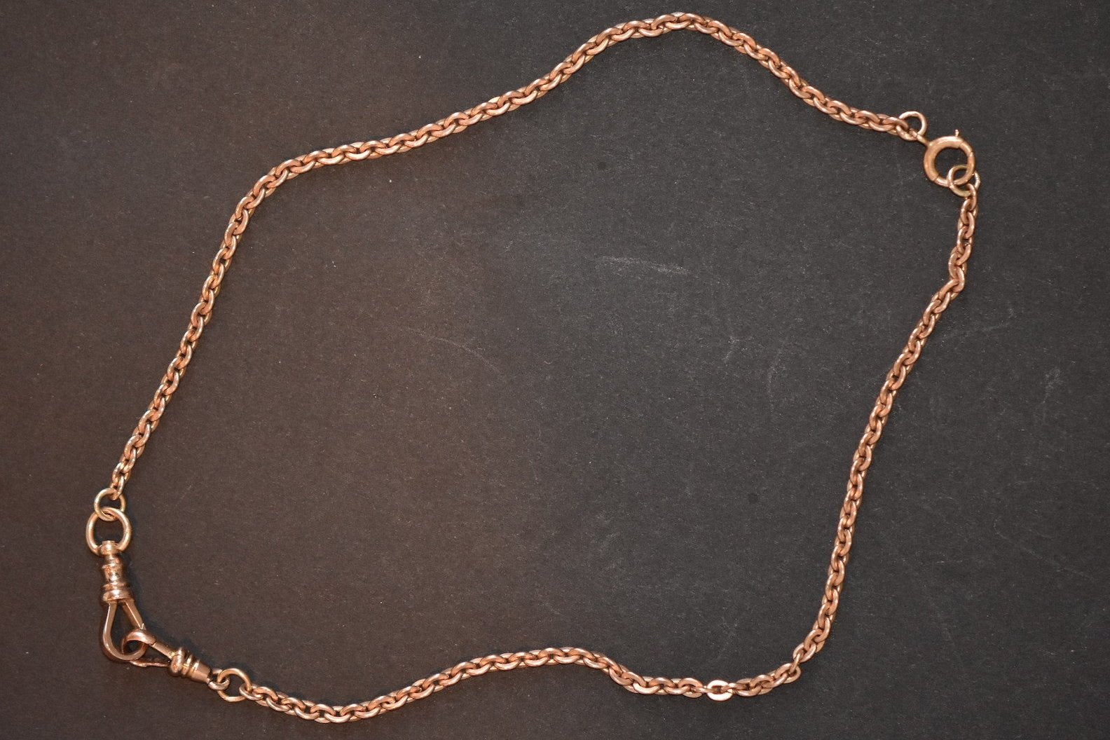 This 14K rose gold watch chain is a rare opportunity to own multiple pieces in one! With two dog clips and a spring clasp, you can mix and match the many ways to piece (or un-piece) this chain together! Meaning it can be your classic watch chain necklace, worn as one or two bracelets, or even used in part as an extender for other pieces.