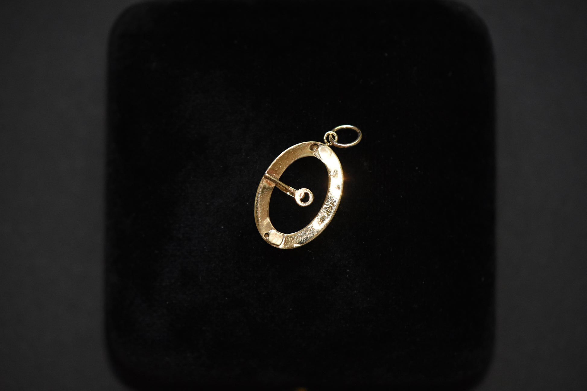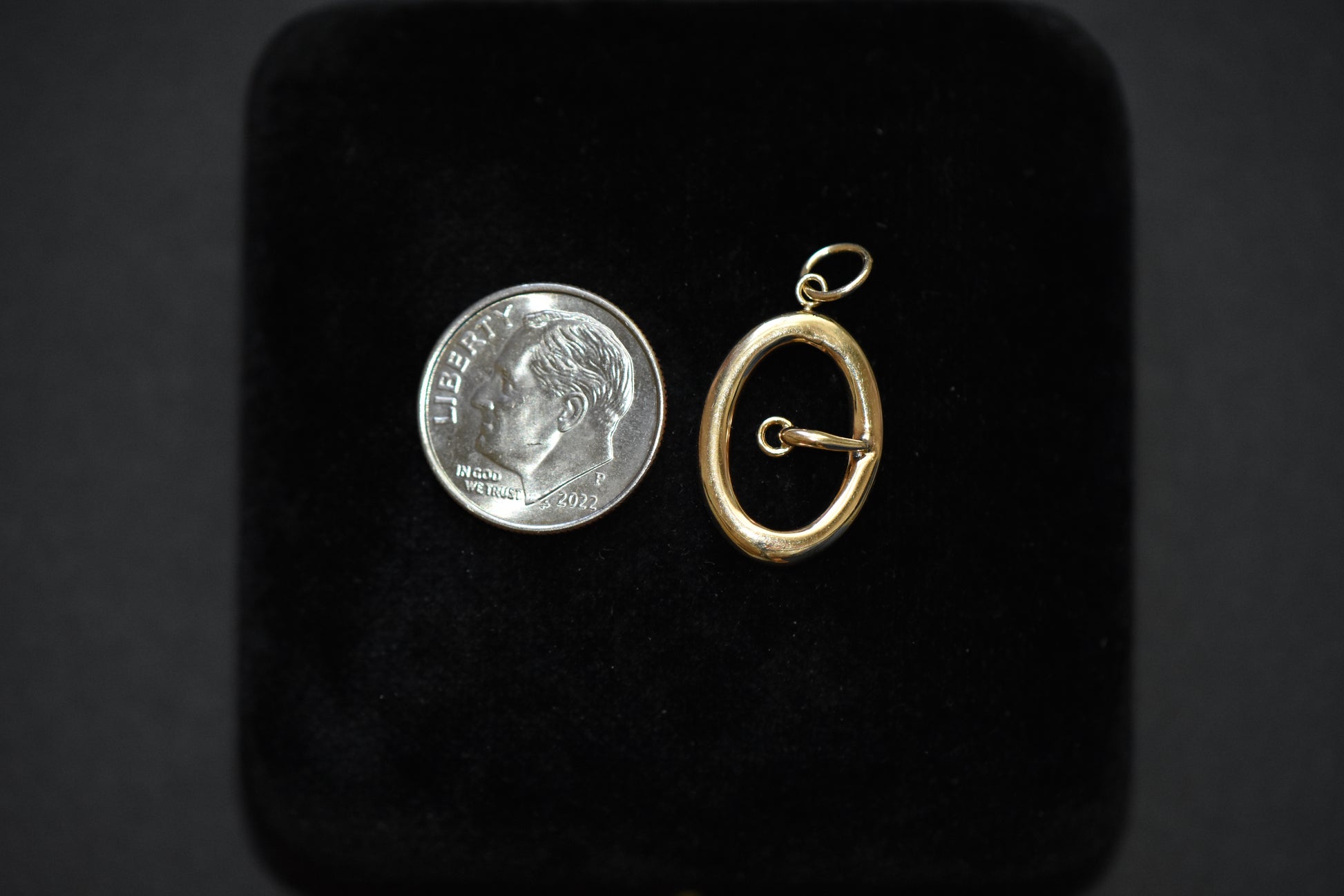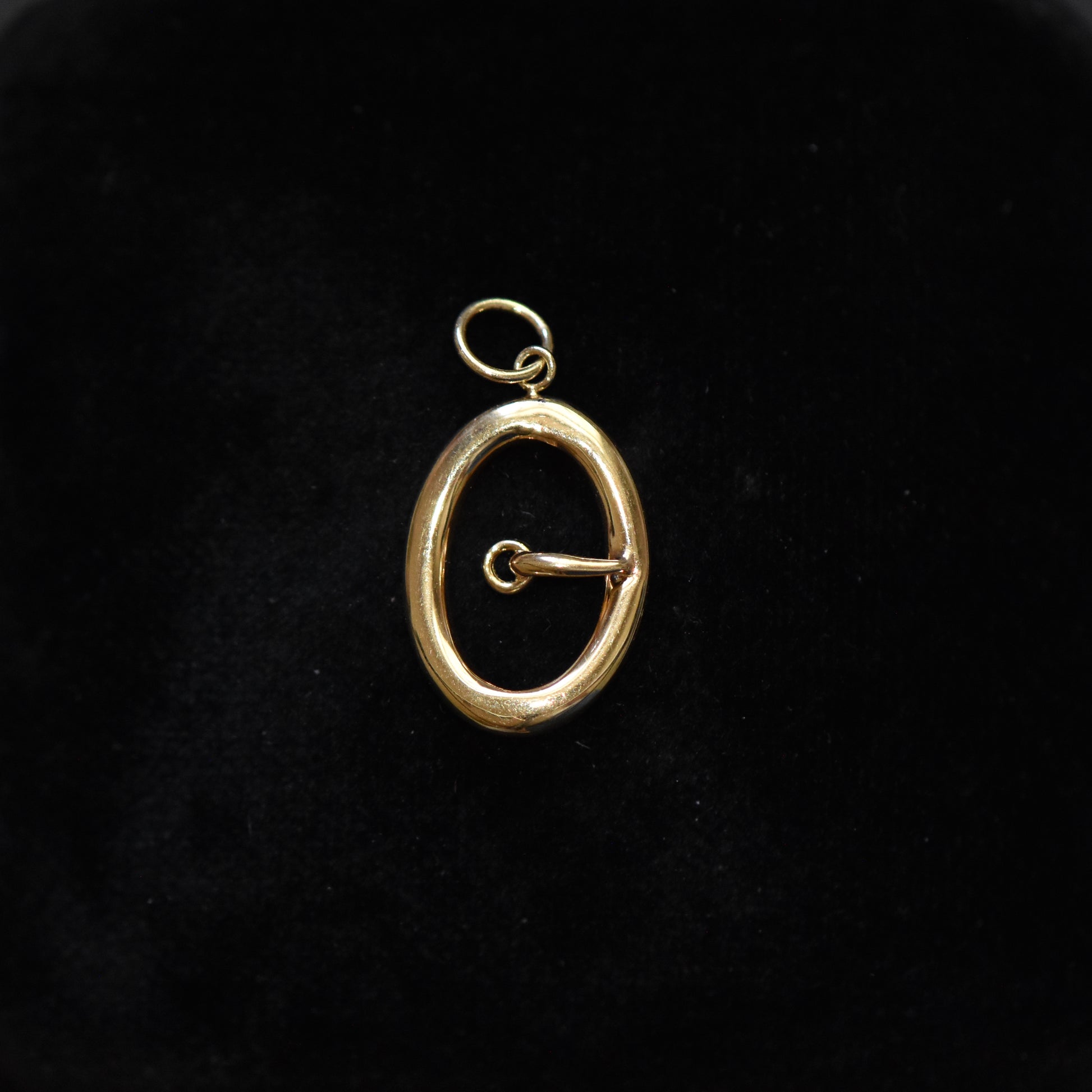 Sweet antique rounded buckle motif charm crafted in 14K yellow gold. Converted from a pin. If you're interested, I have a second sister-style buckle charm in another listing.