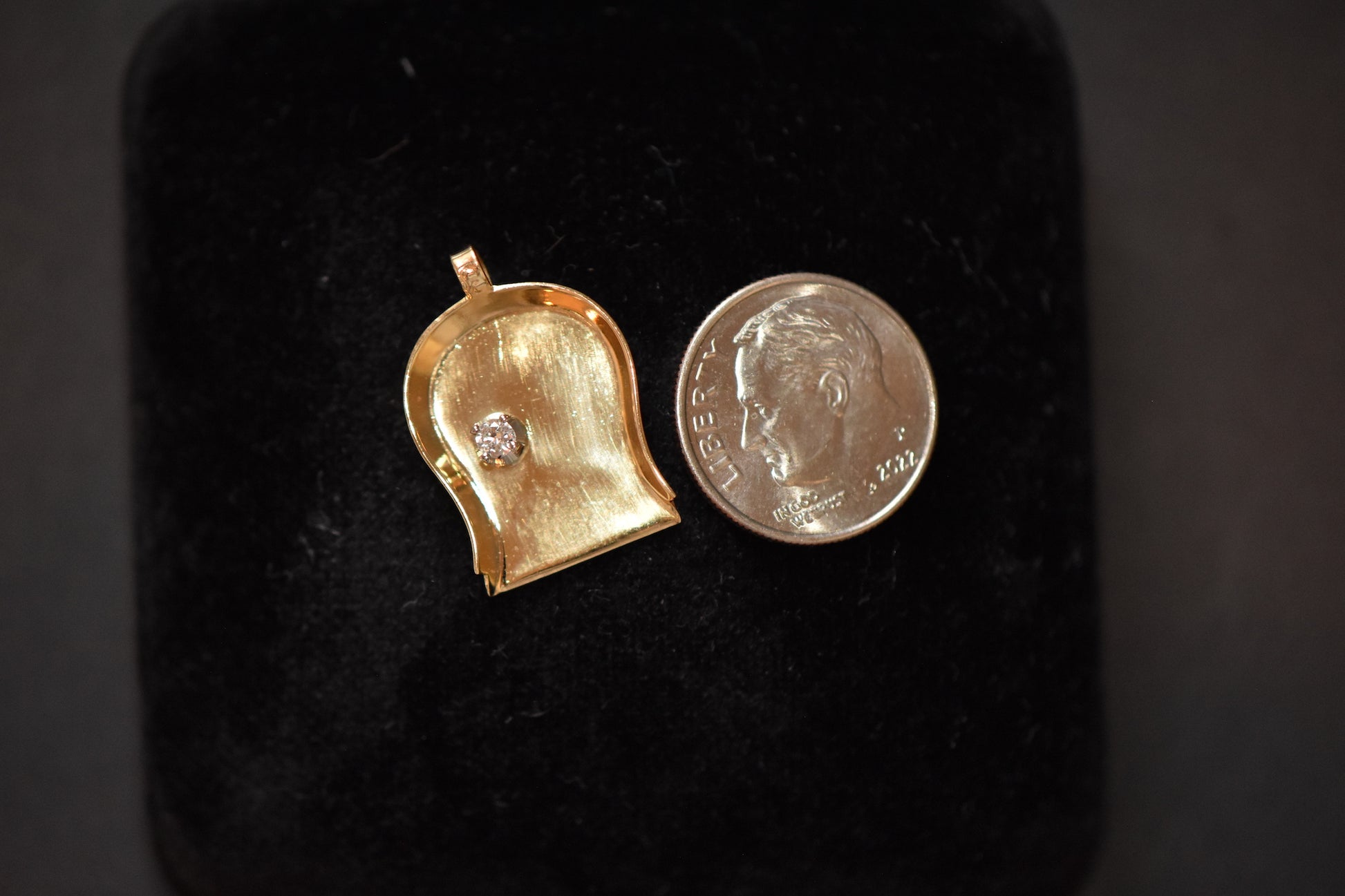 Vintage solid gold jeweler's diamond scoop crafted in 18K yellow gold with a bright and sparkling round cut diamond, a unique collector's piece for jewelry enthusiasts and professionals, alike.