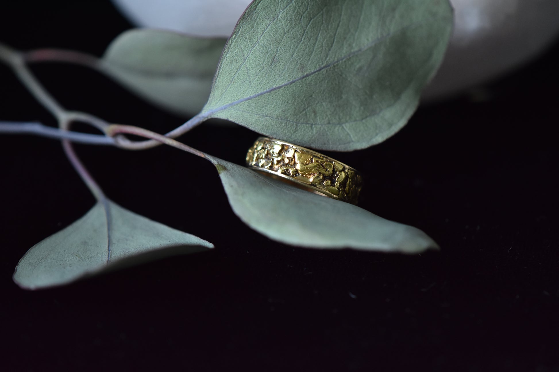 One of the most historically significant happenings in American History – The Gold Rush. As you spin this ring around your finger, observe the gold in its original form, the nugget. Imagine the panning and the ecstasy of discovery, each one pulled from a river, distinctly unique in shape and weight from the previous. The American treasure hunt.