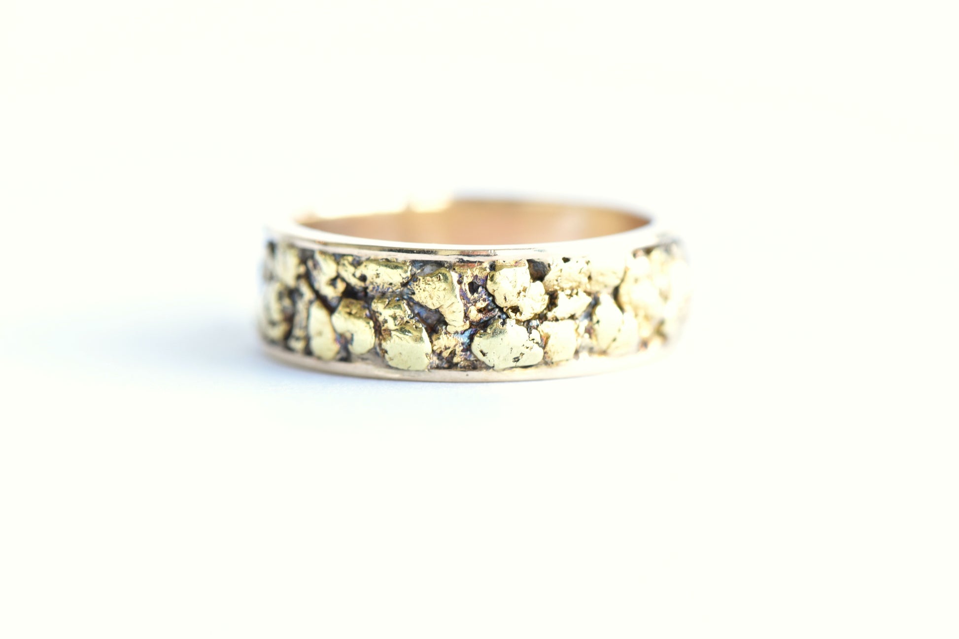 Description: Vintage band with natural gold nuggets in a 14K setting.