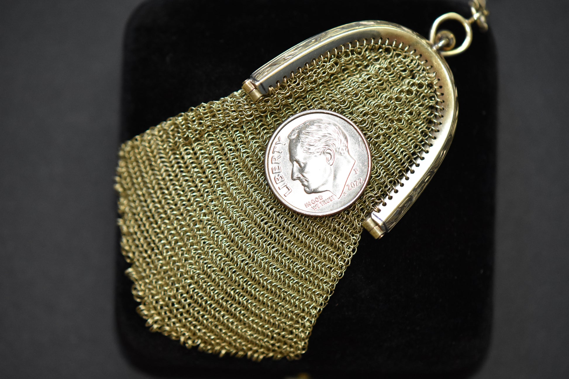 | Antique Gold Mesh Purse Pendant in 14K Gold |