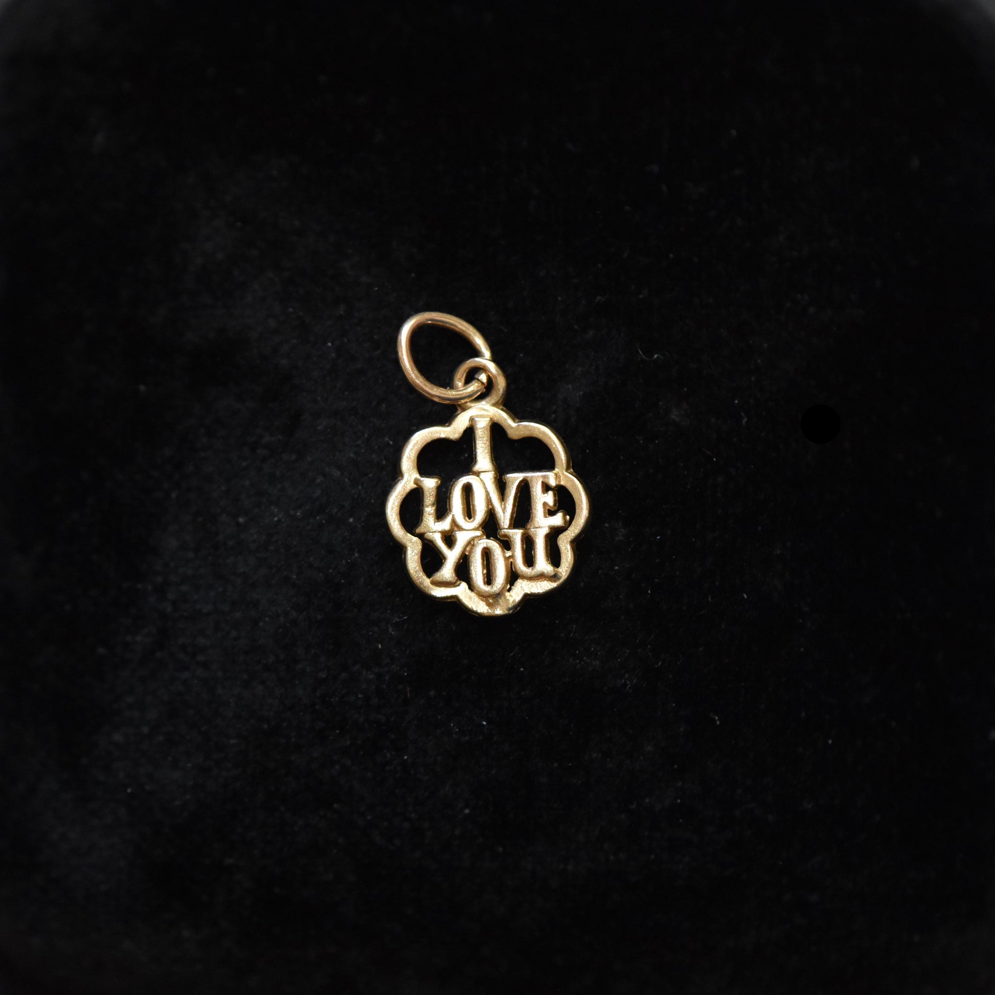 Vintage 10K yellow gold charm with a scalloped border around I Love You!