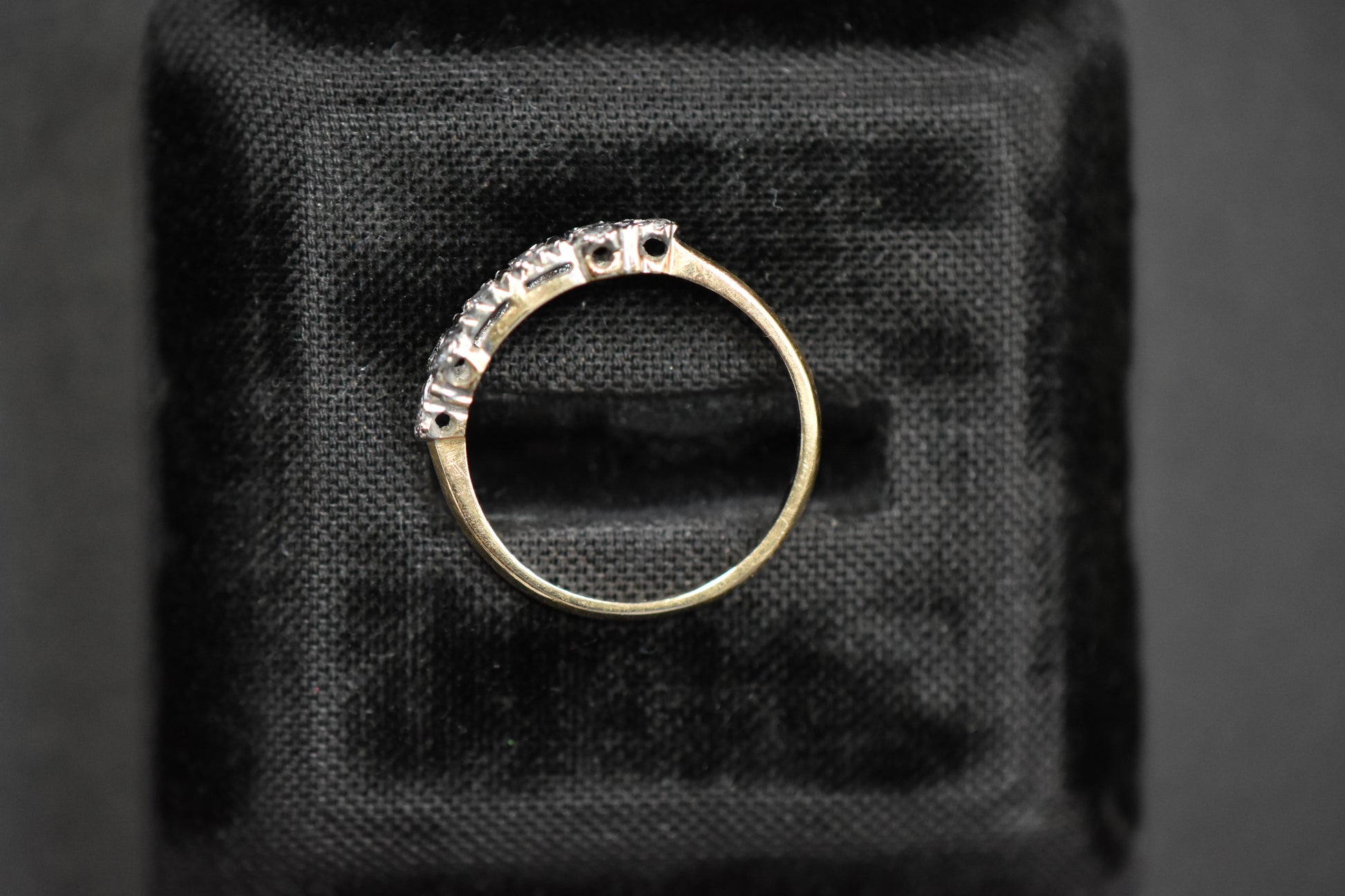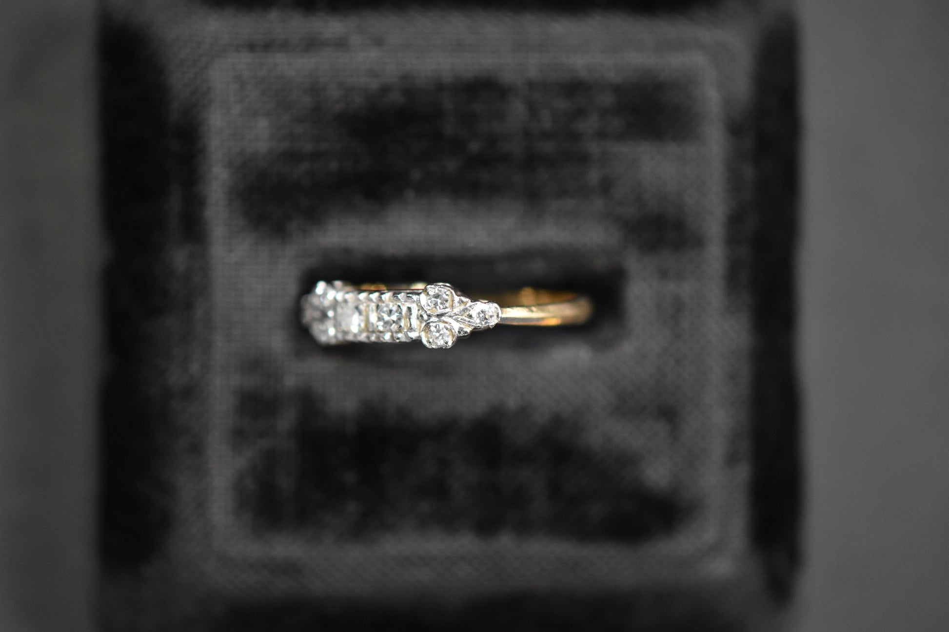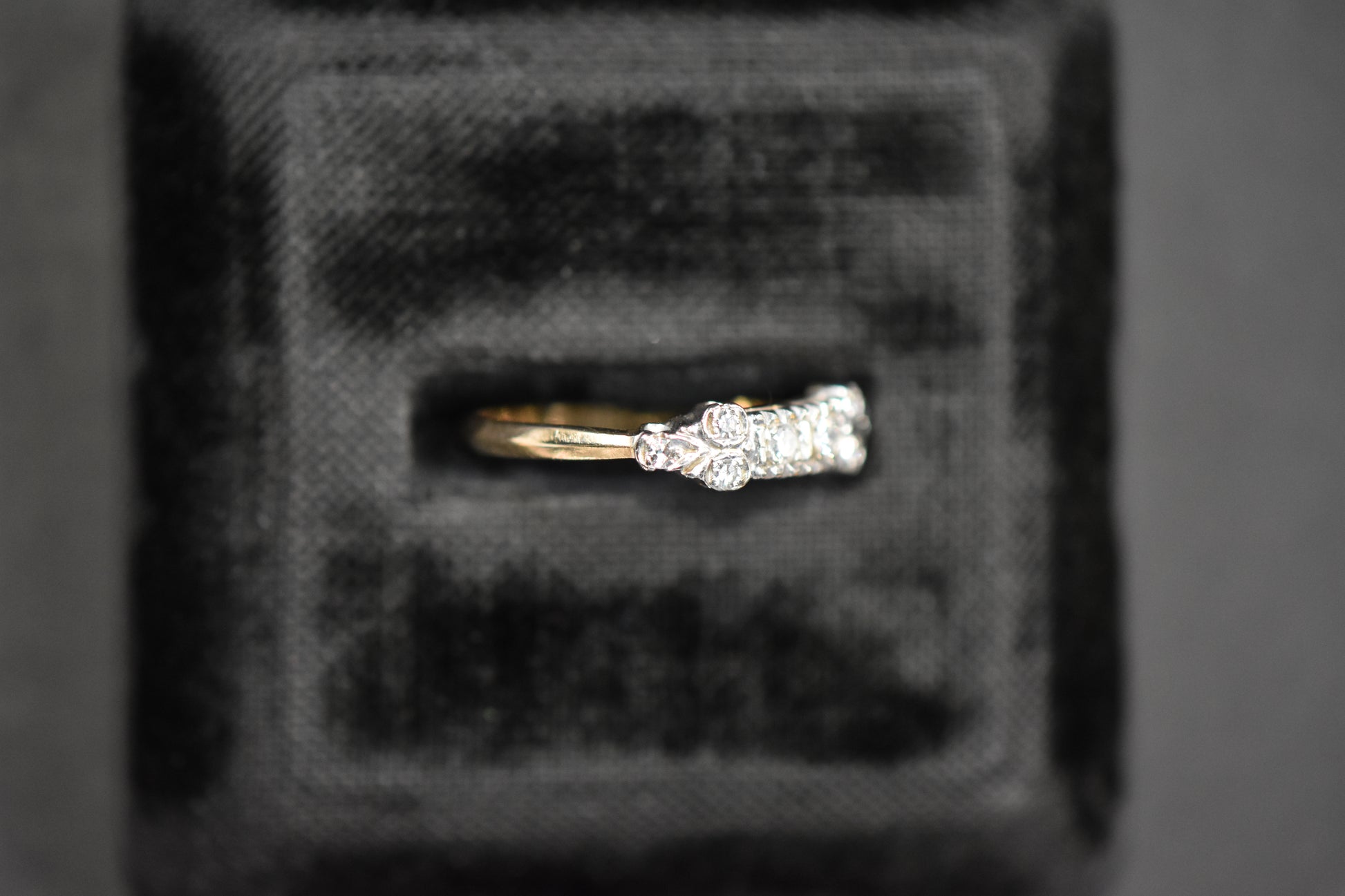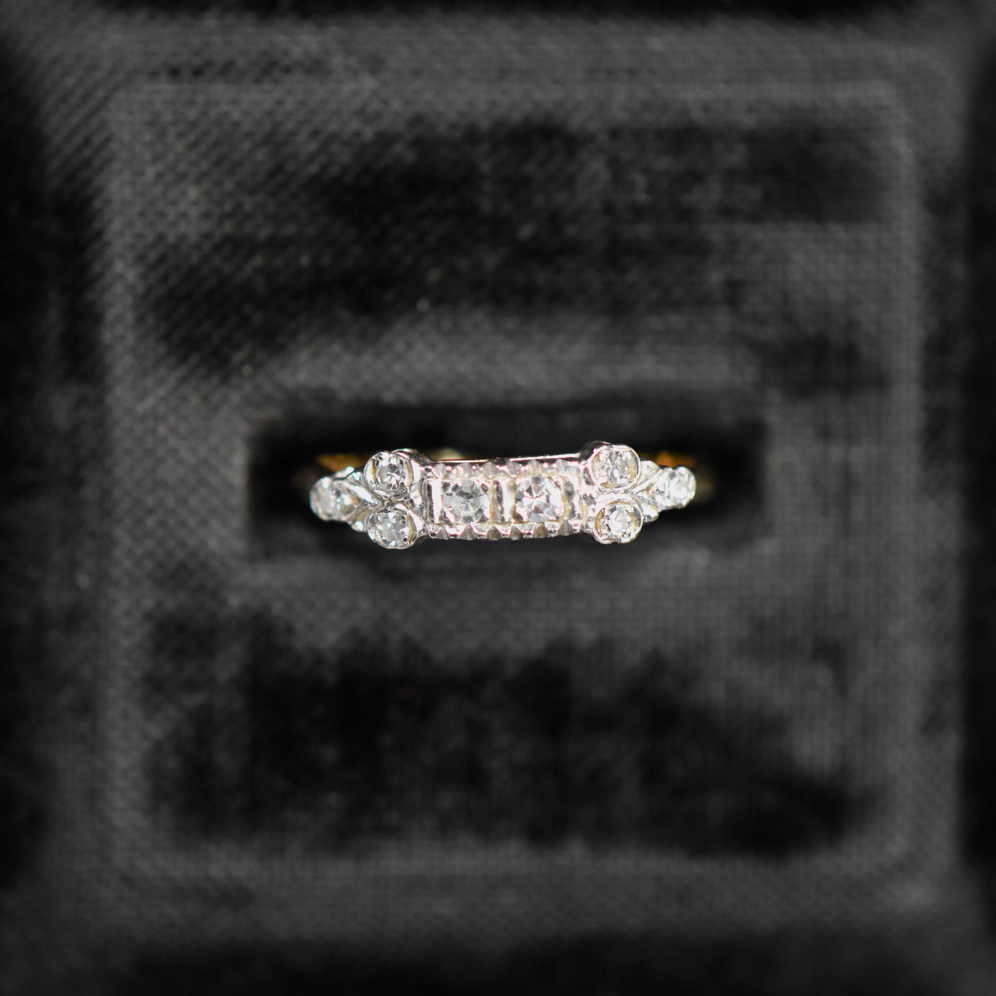 Pretty Art Deco era diamond band crafted in platinum topped 14K yellow gold.