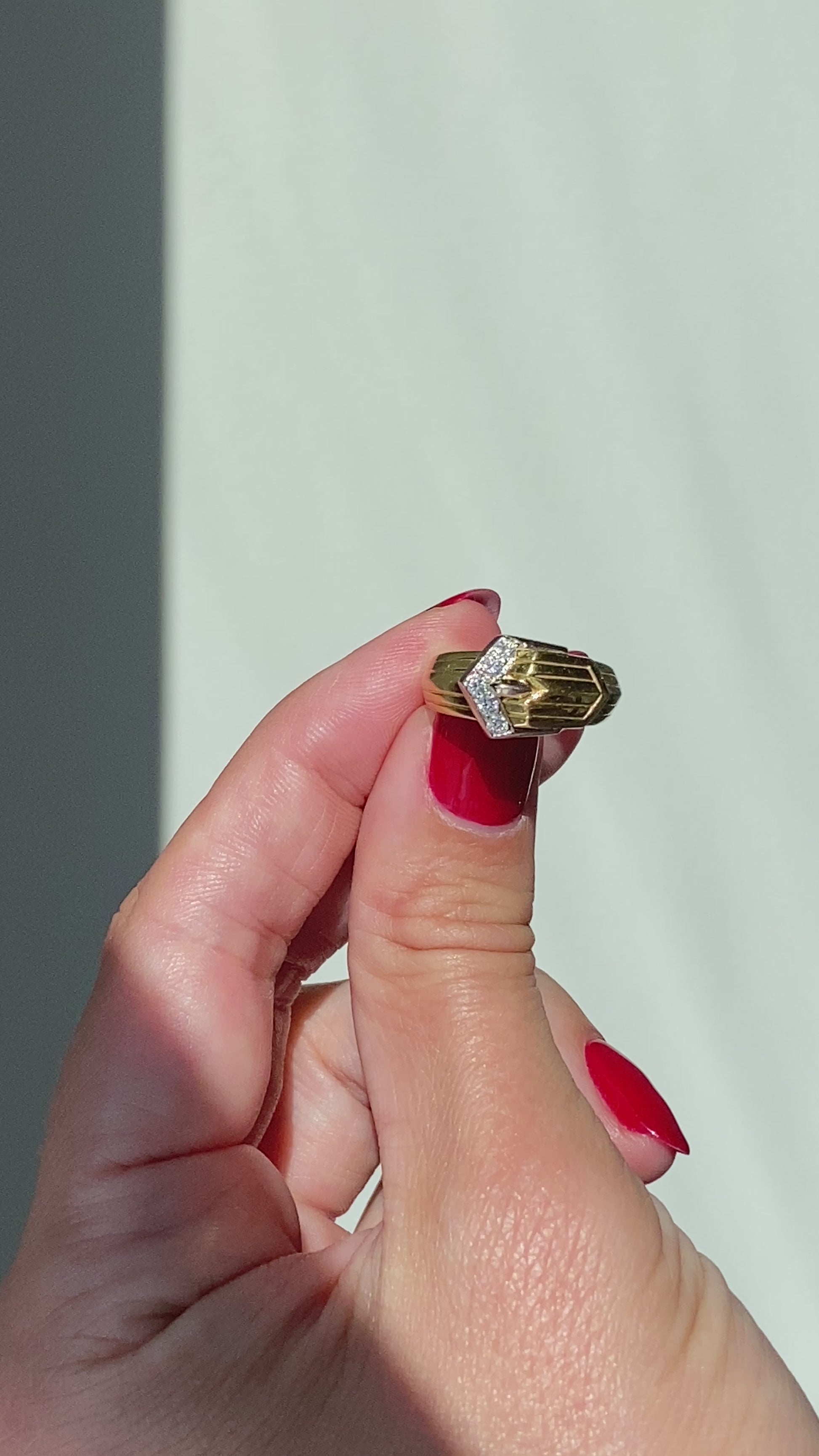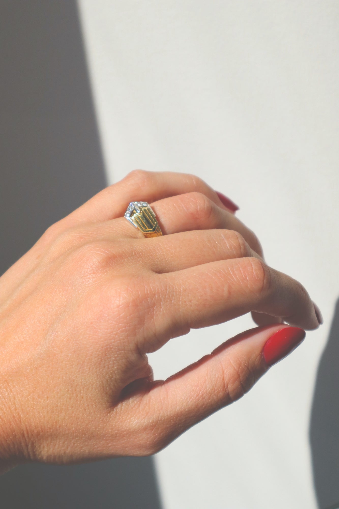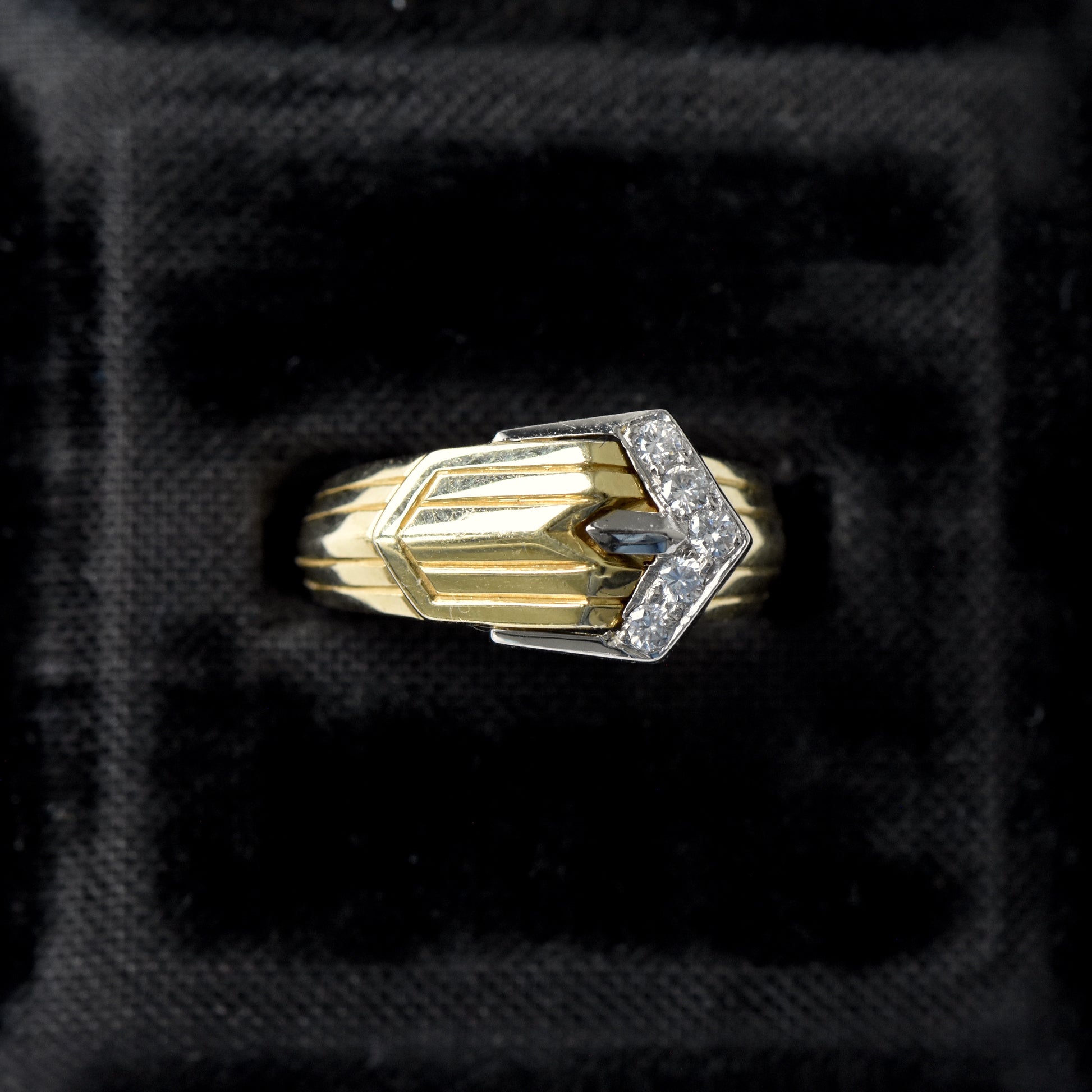 | Exceptional Estate Buckle Motif Diamond Ring in 18K Gold |