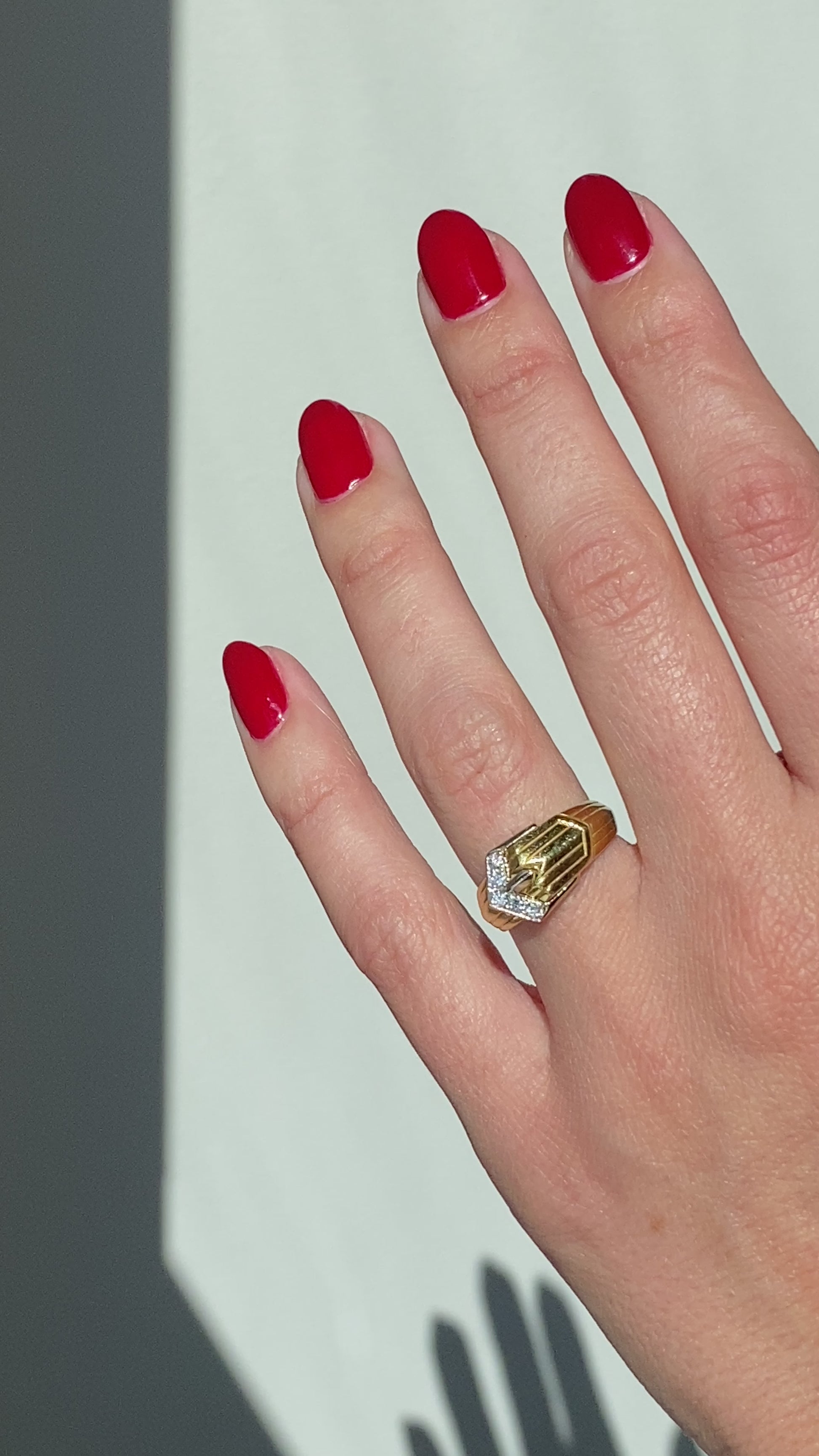 The symbolism of the buckle was highly popularized in the 19th century, used to represent fidelity, strength, and eternity. This updated version crafted in 18k gold sometime in the second half of the 20th century, has all the symbolism of its earlier counterparts. But this diamond buckle ring is sleeker, figural and futuristic at the same time. With its symbolism, I do love the idea of this as an engagement ring. But if you’re not in the market for an external commitment to love, then might I suggest it as a gift to yourself. You know you should be your no.1 fan, but sometimes it’s easier to remember that when its memorialized in gold.