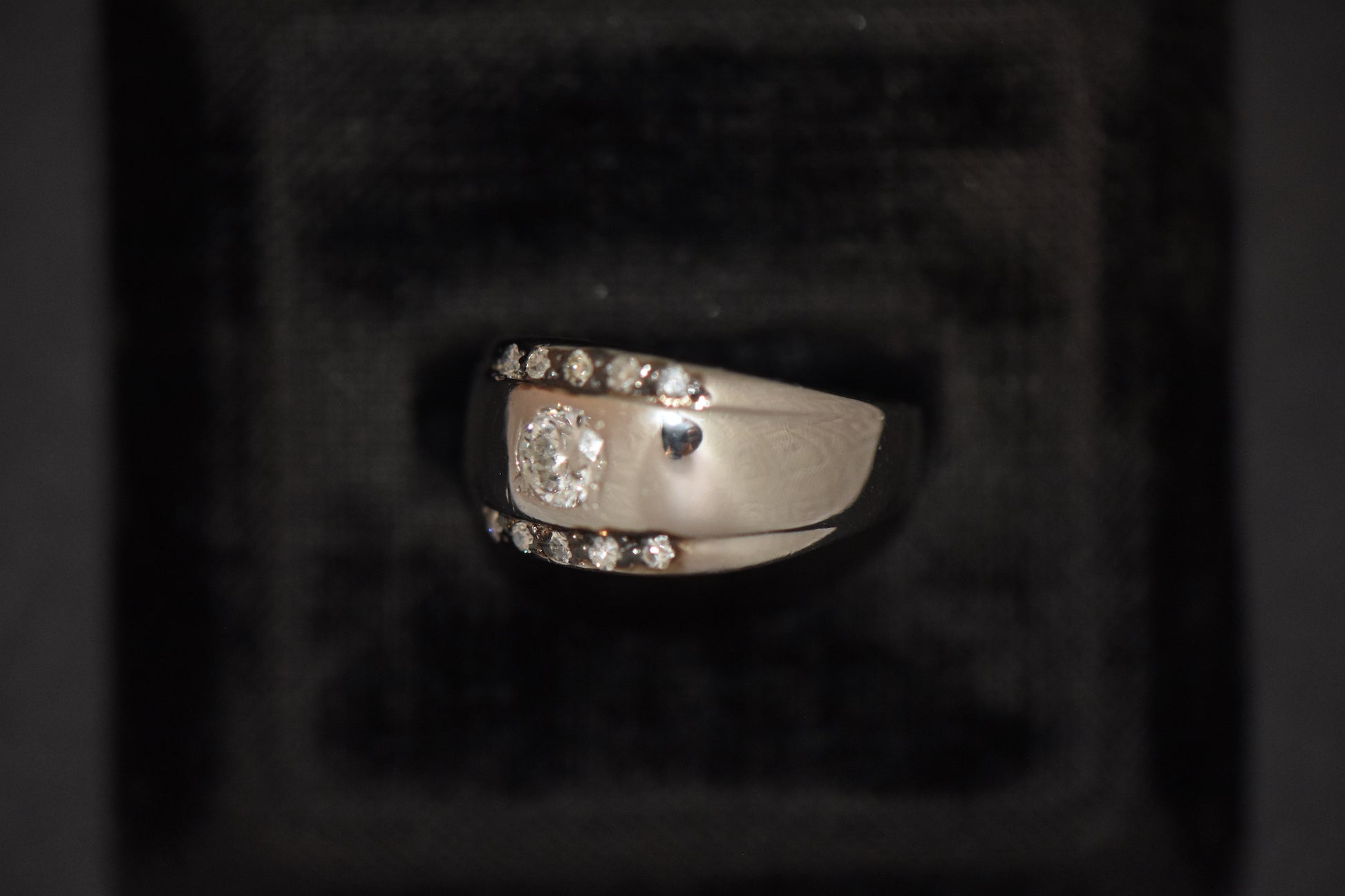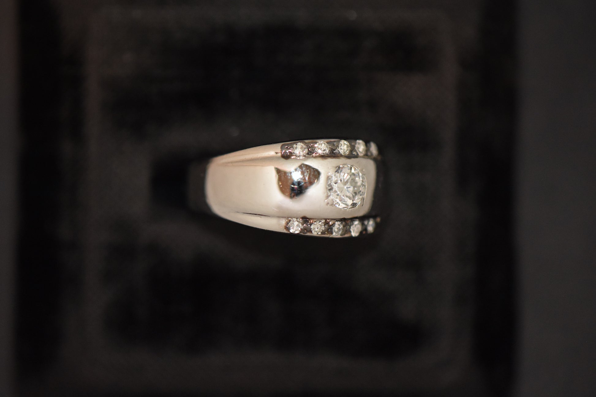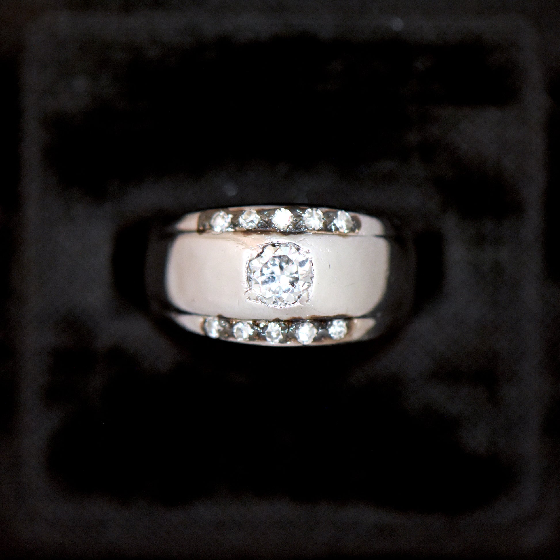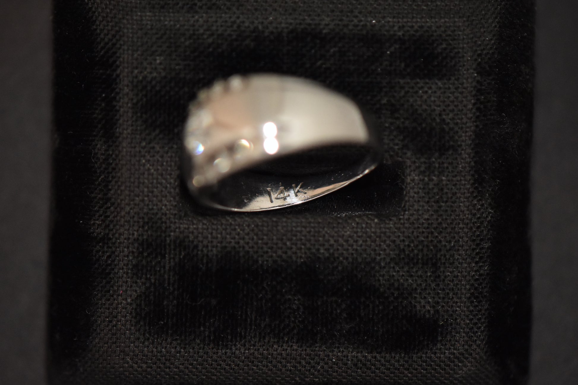 Crisp bright diamonds set in white gold make this the perfect standalone ring, but don't forget it also adds that cooling effect to your mixed-metals look.