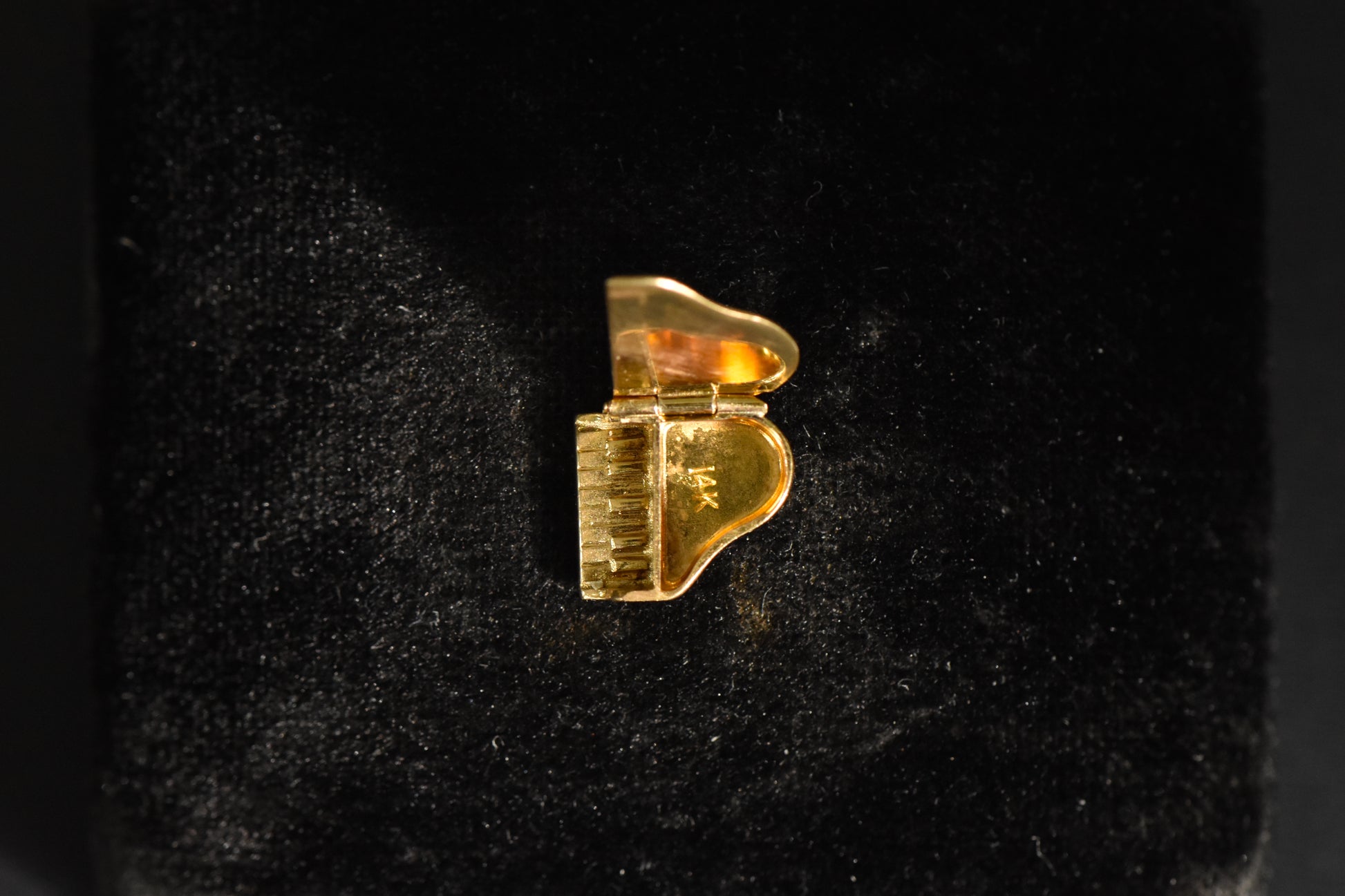 Adorable piano charm, with a secretly opening top! The legs were removed, which actually makes it a more comfortable charm to wear... all the time.