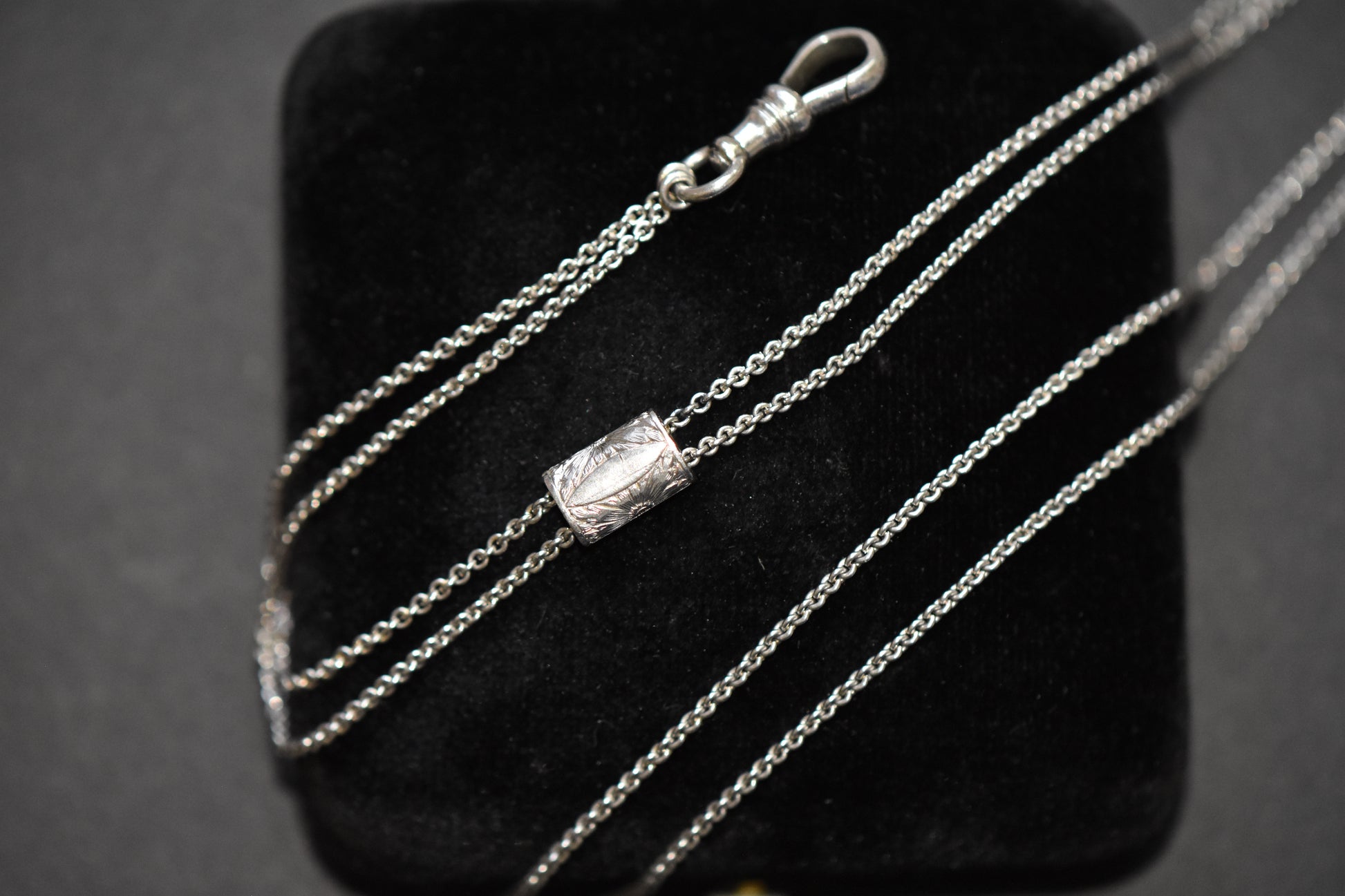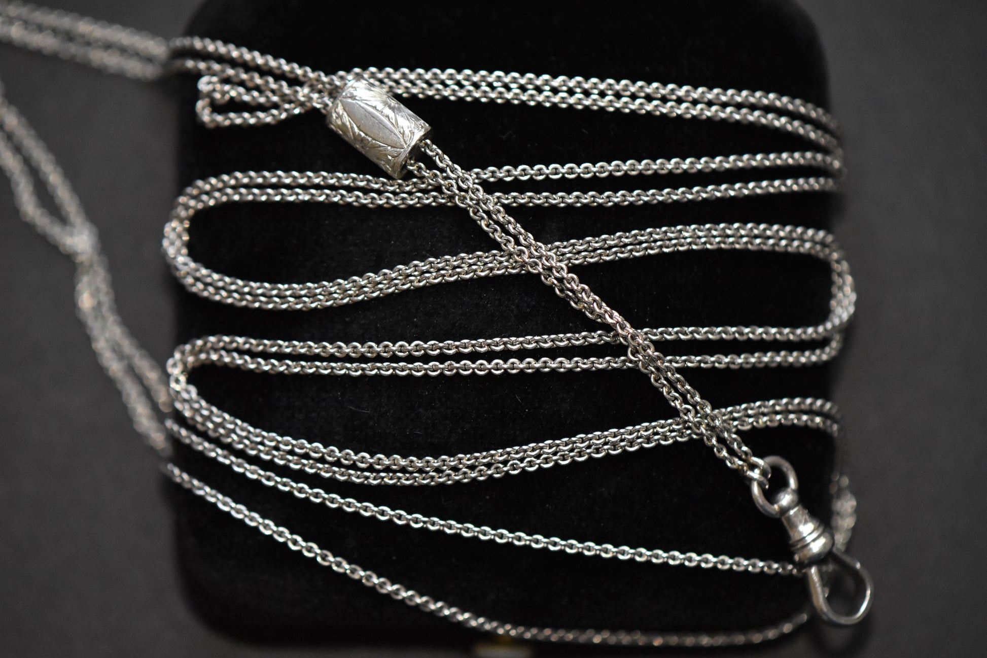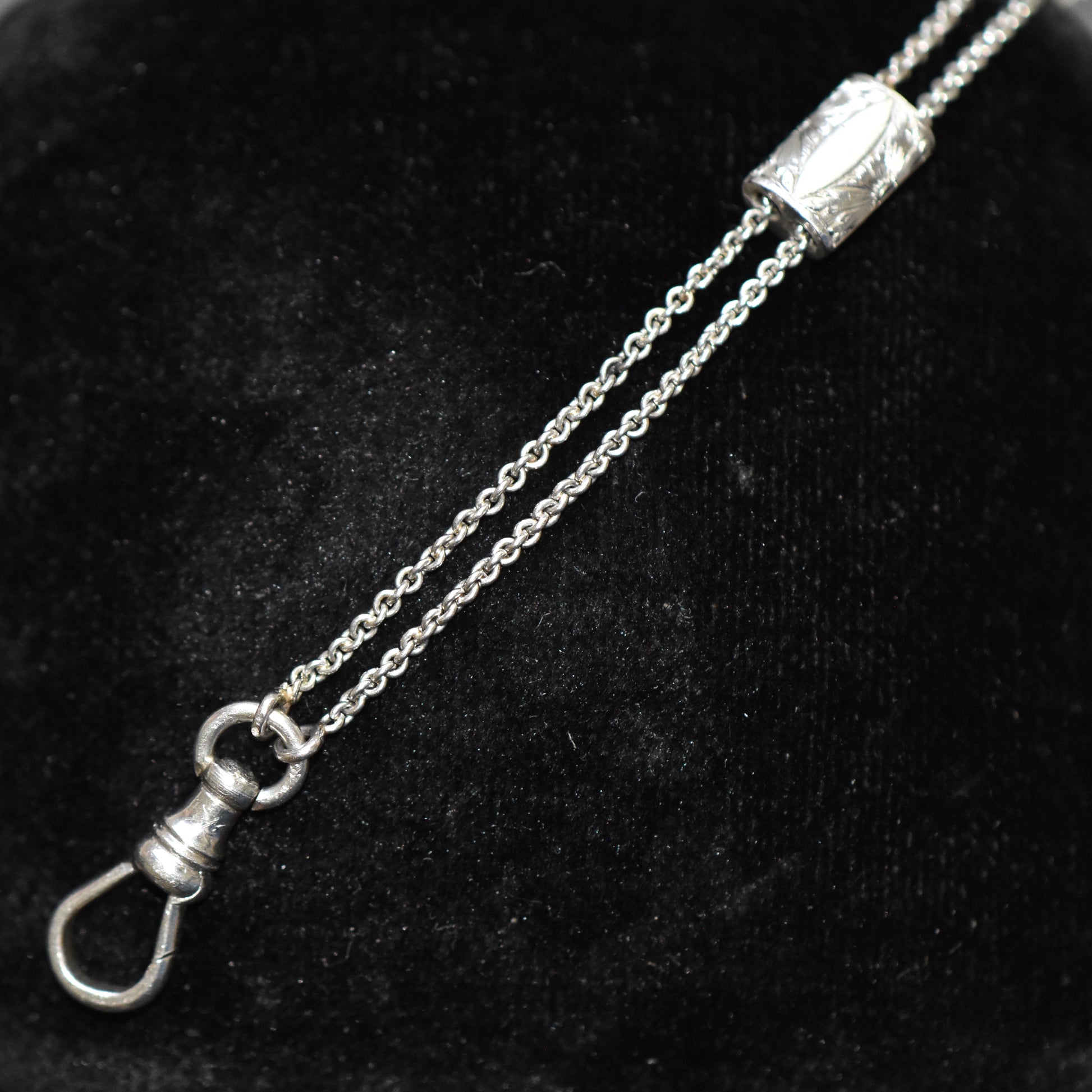 Superb Art Deco c. 1920s Platinum Longuard Chain with Floral Slide