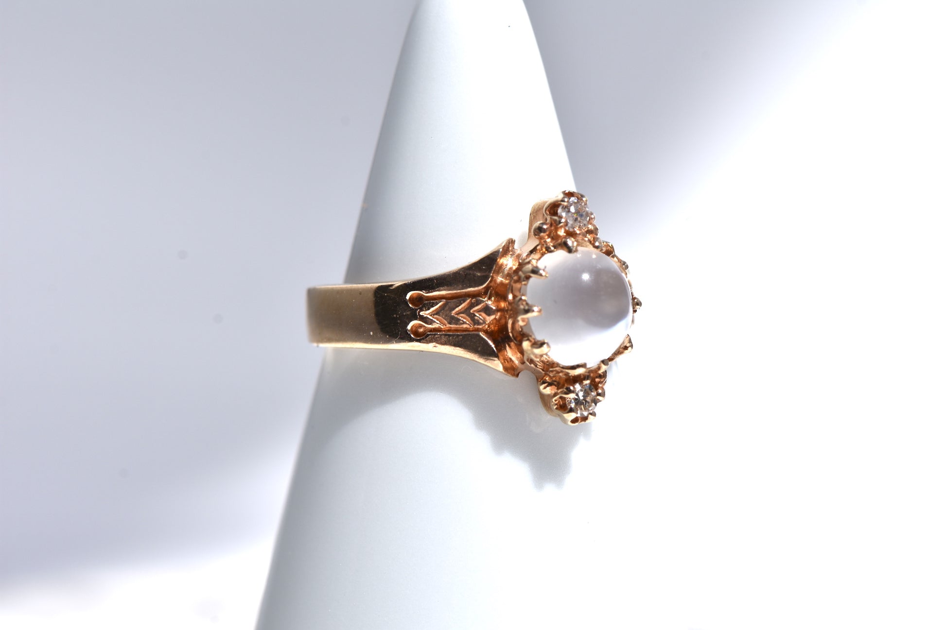 | Victorian Moonstone and Diamond Trilogy Ring in 14K Gold |