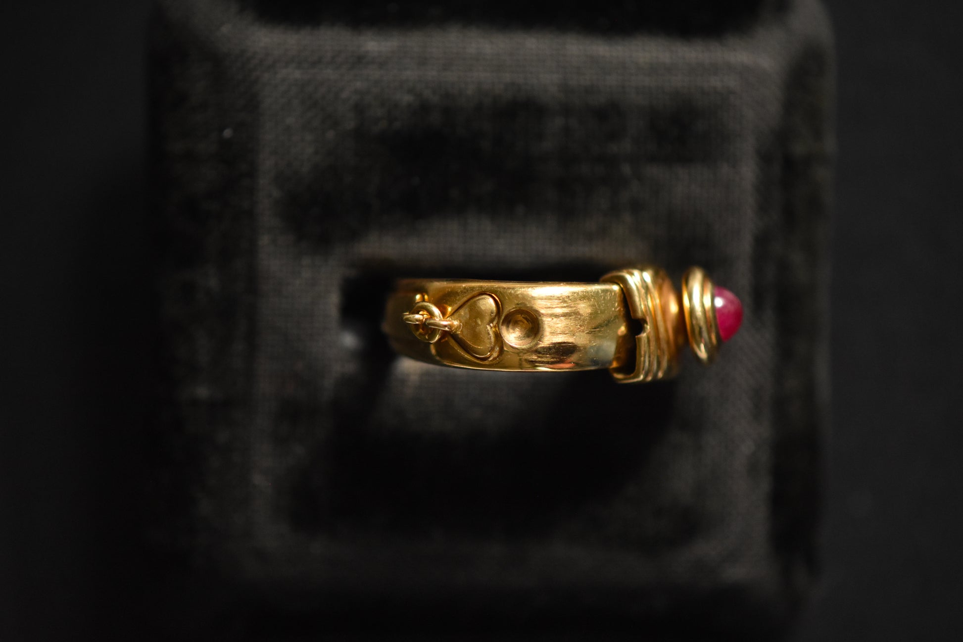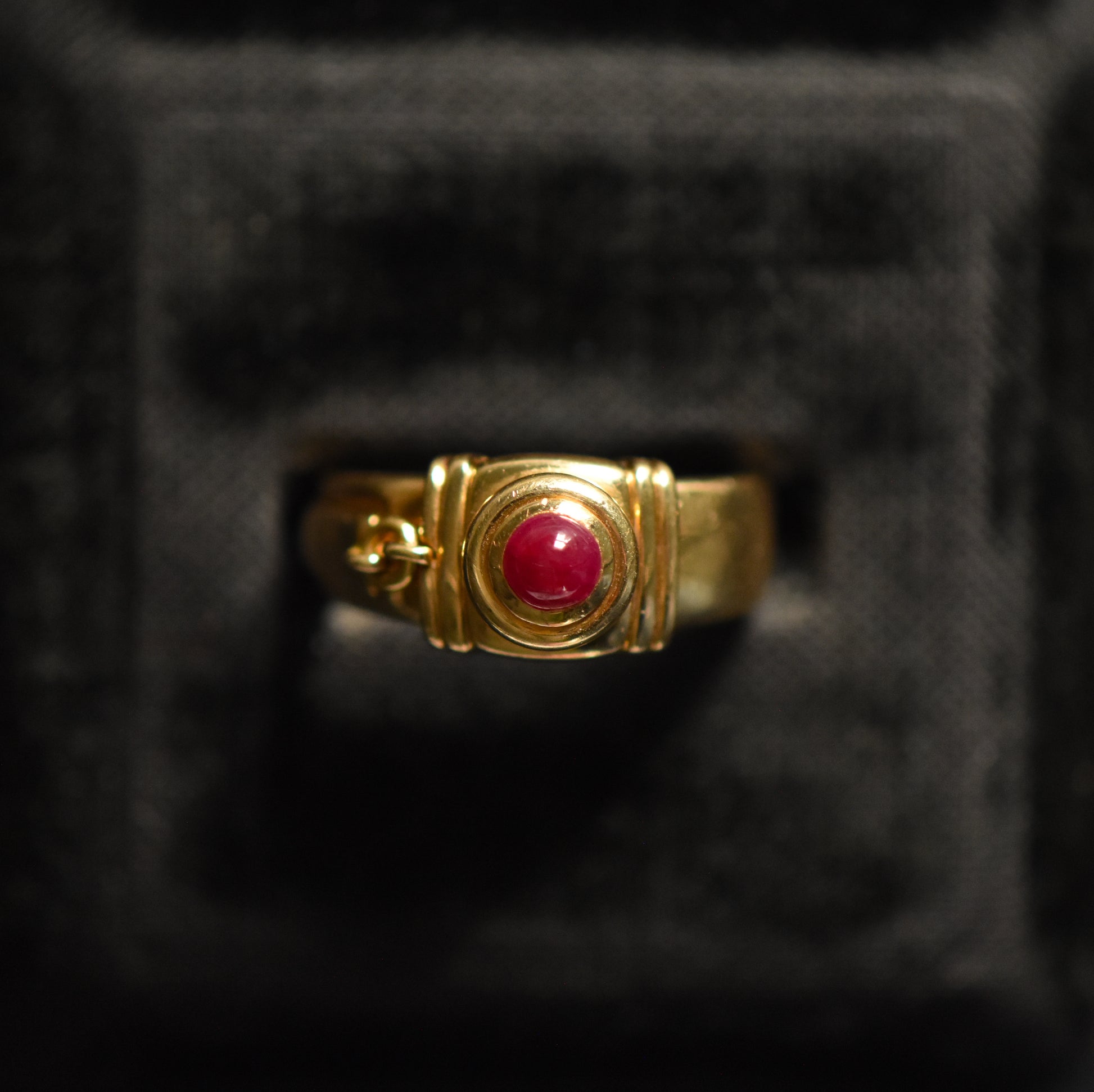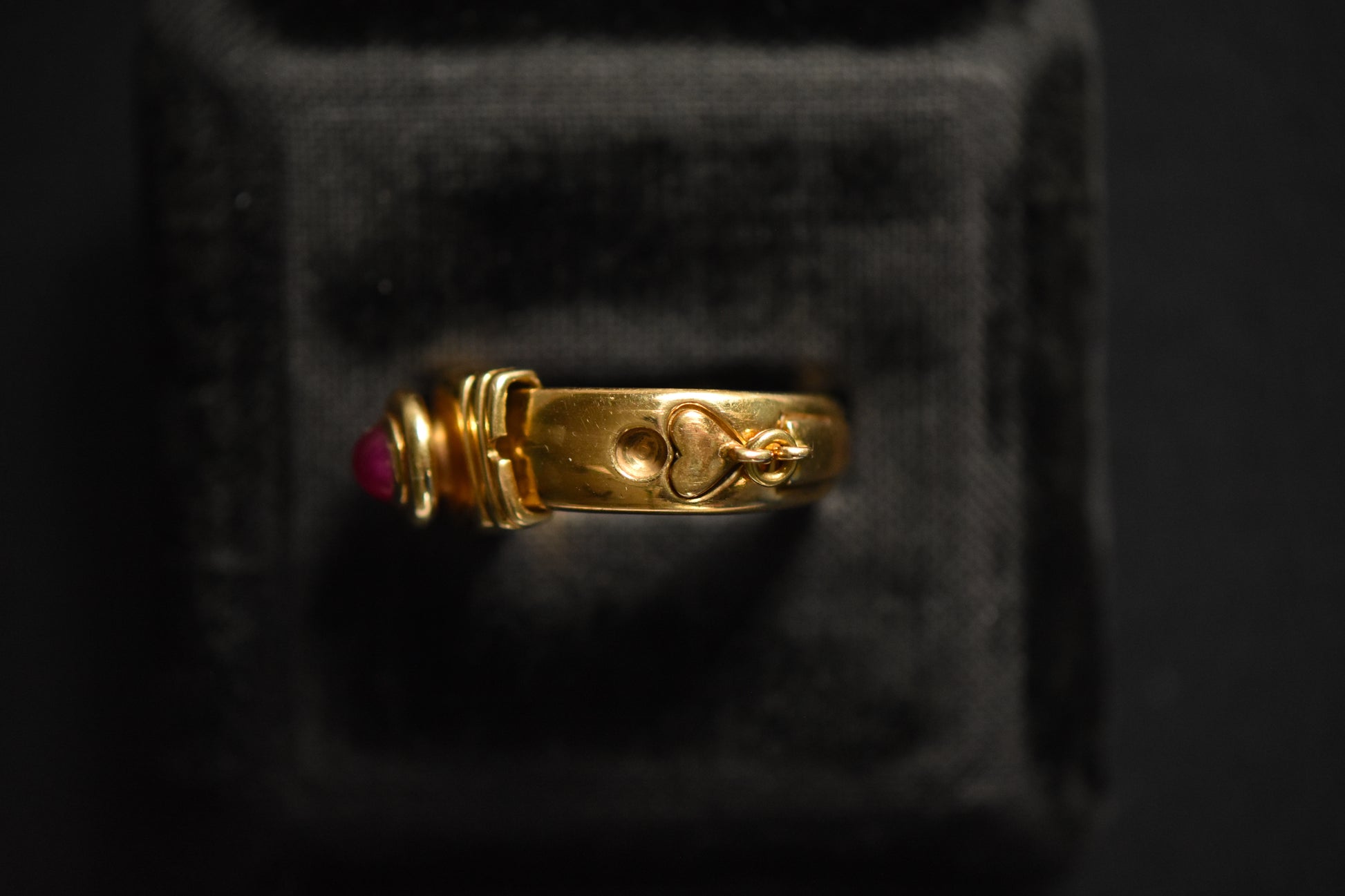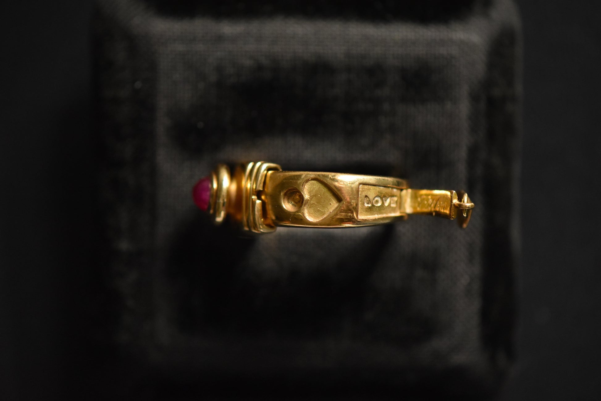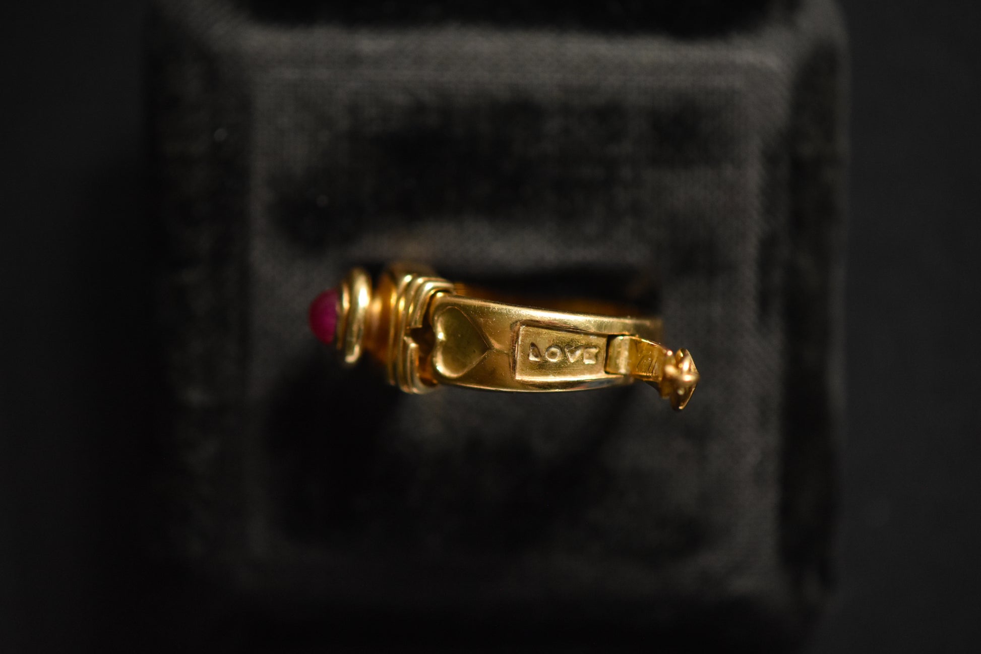 Signed Tabbah, an exclusive high jewelry house, crafted this ruby cabochon ring with a loving secret. Check out the photos to see what this bracelet is all about! Matching bracelet with the same mechanism coming soon in a separate listing.