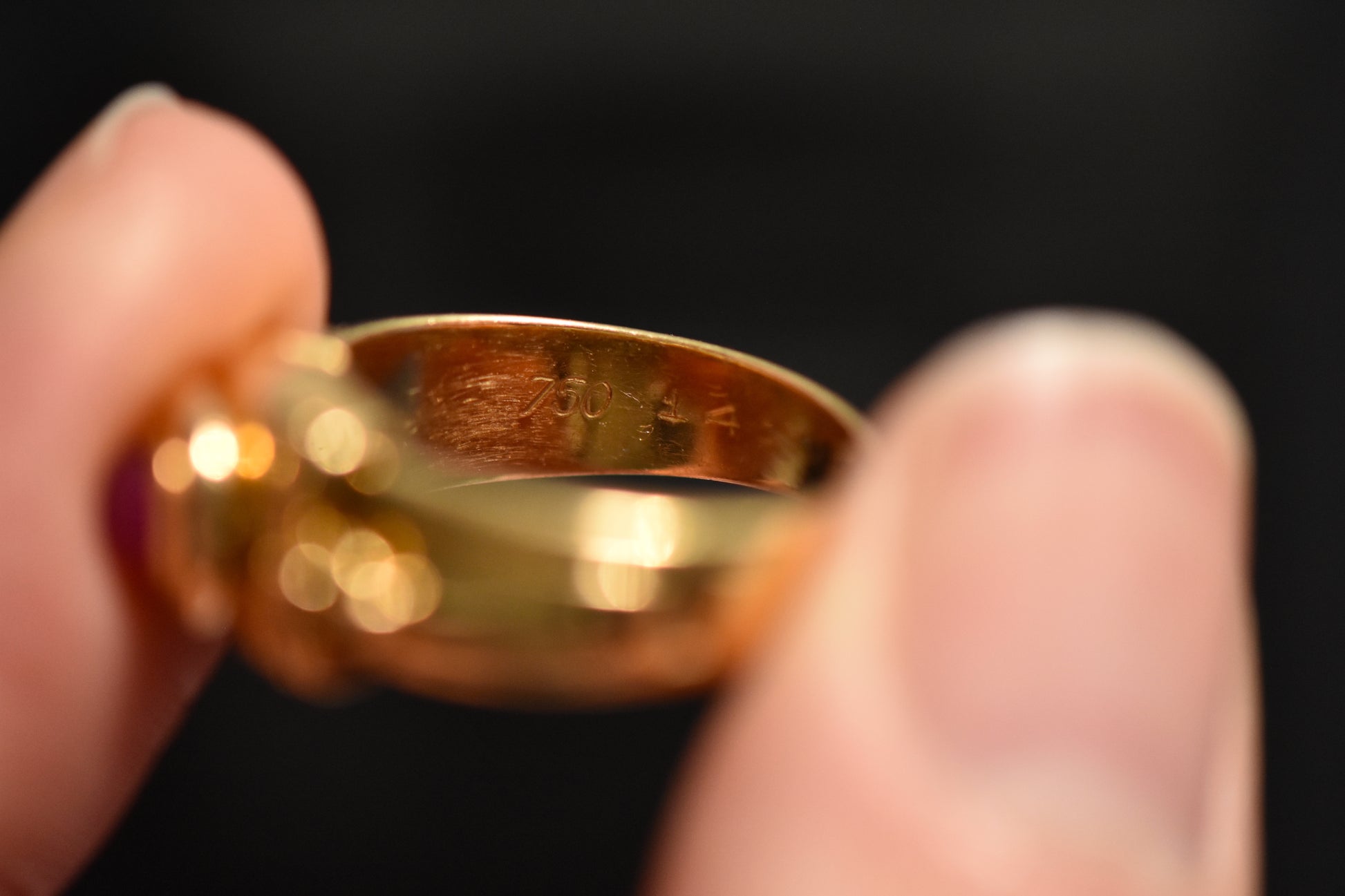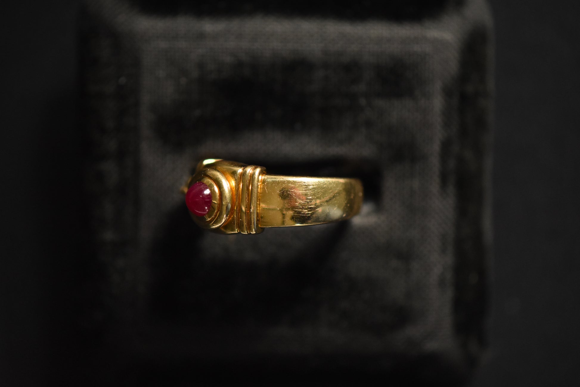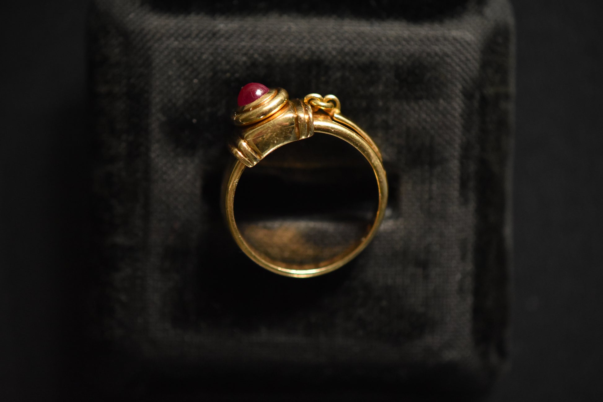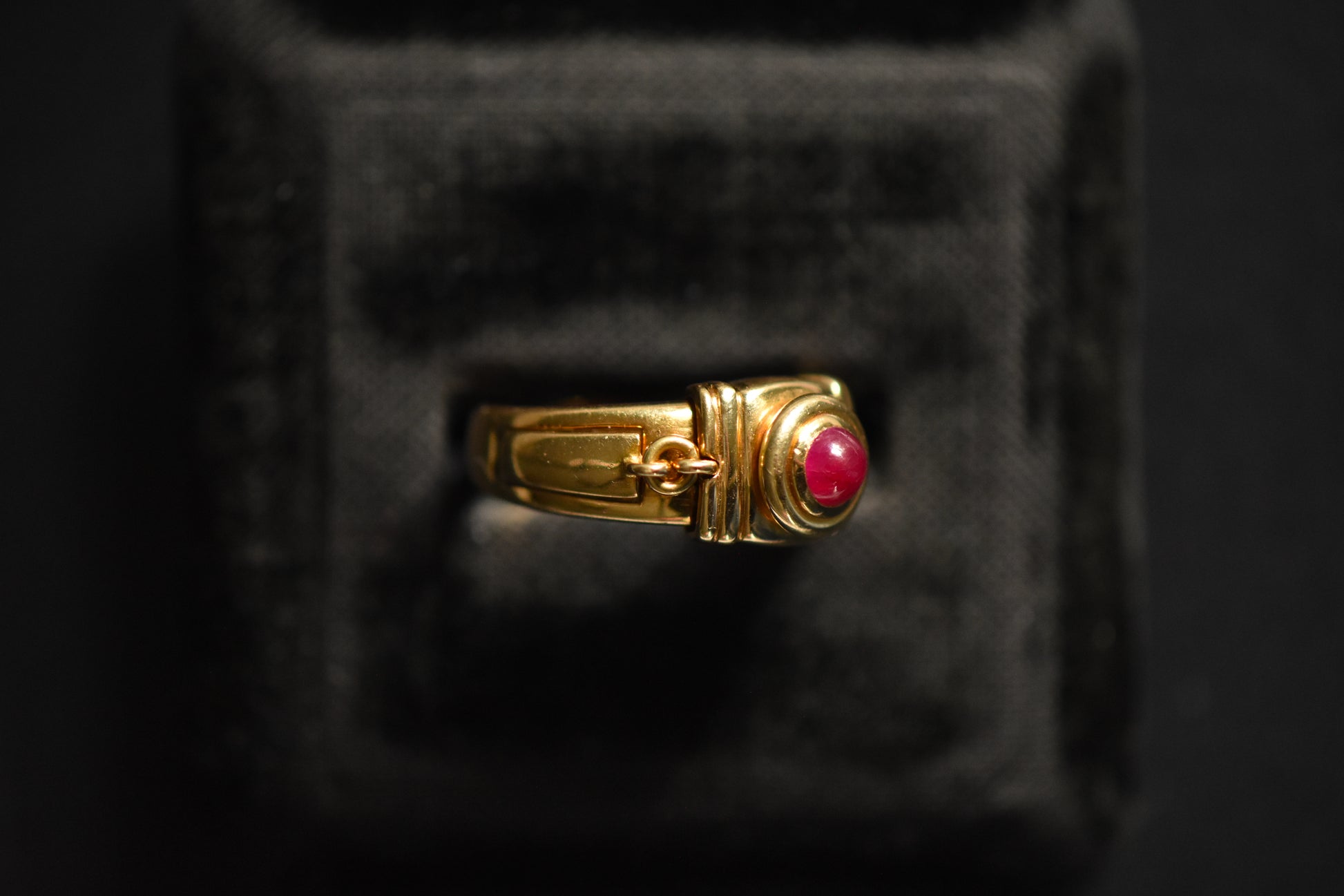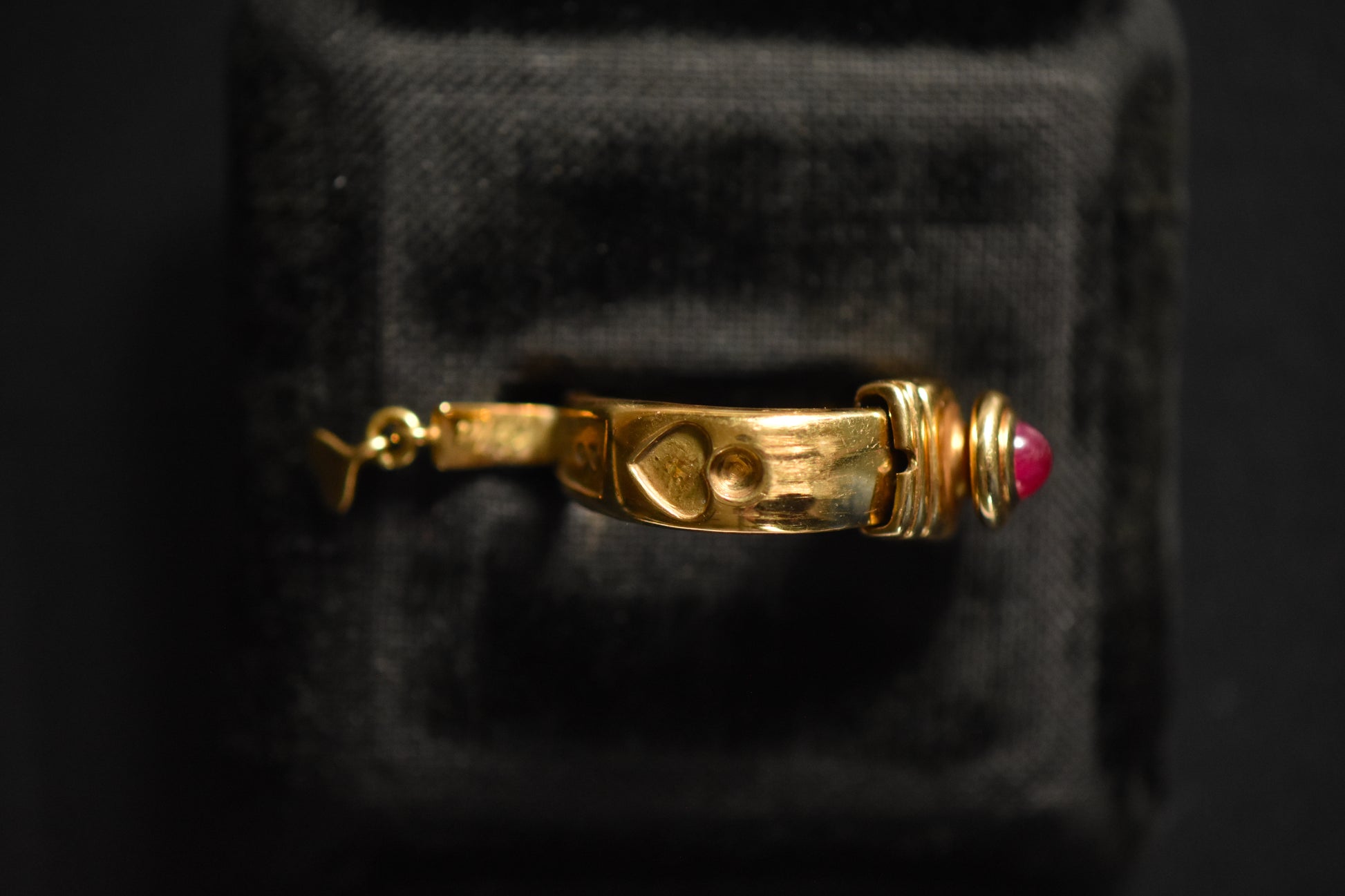 Signed Tabbah, an exclusive high jewelry house, crafted this ruby cabochon ring with a loving secret. Check out the photos to see what this bracelet is all about! Matching bracelet with the same mechanism coming soon in a separate listing.