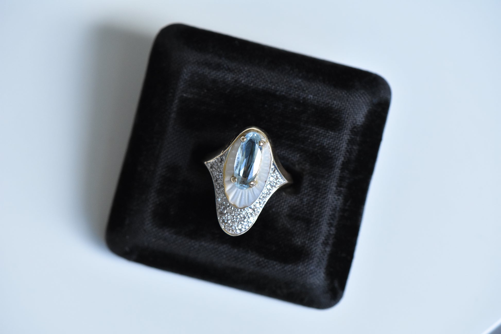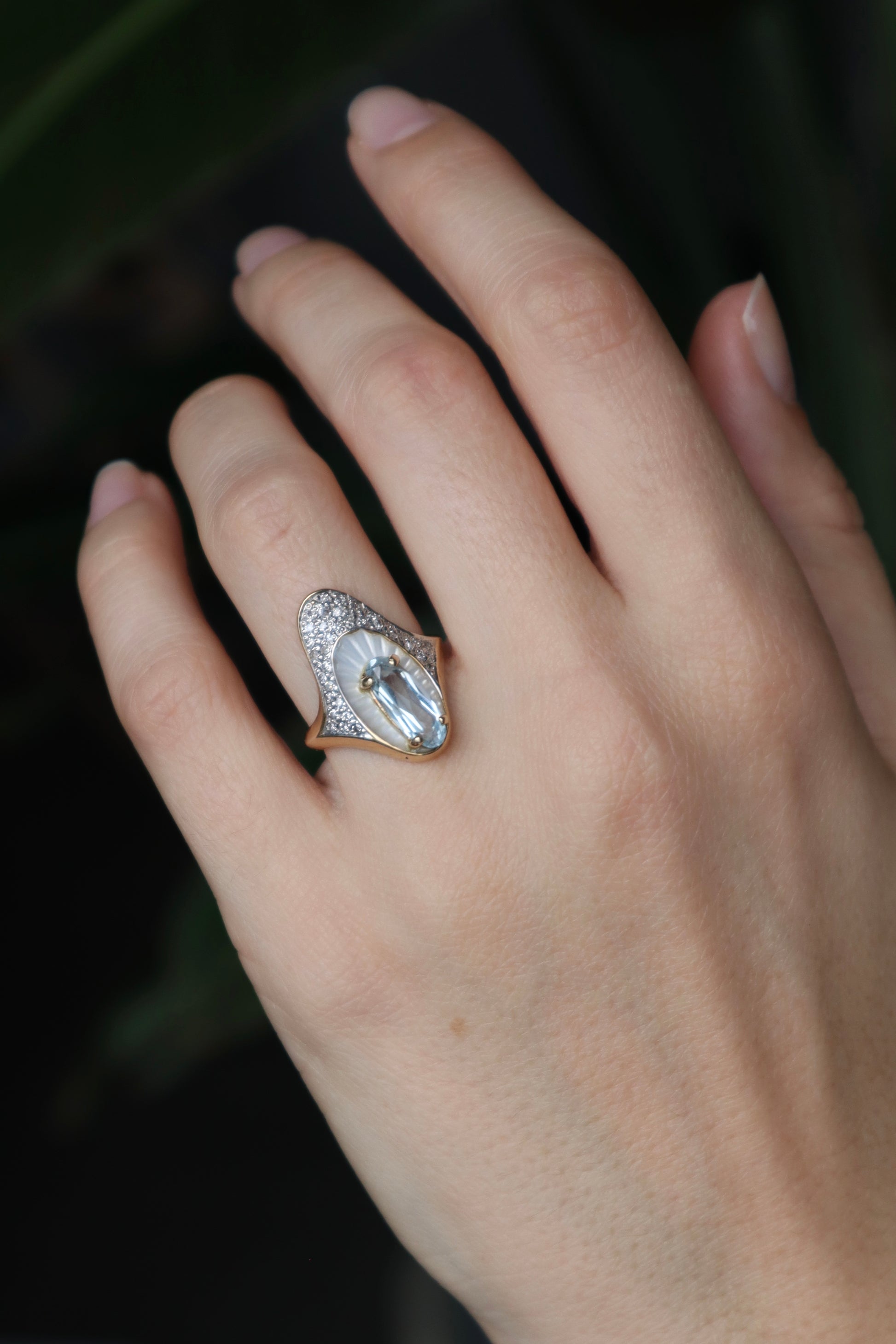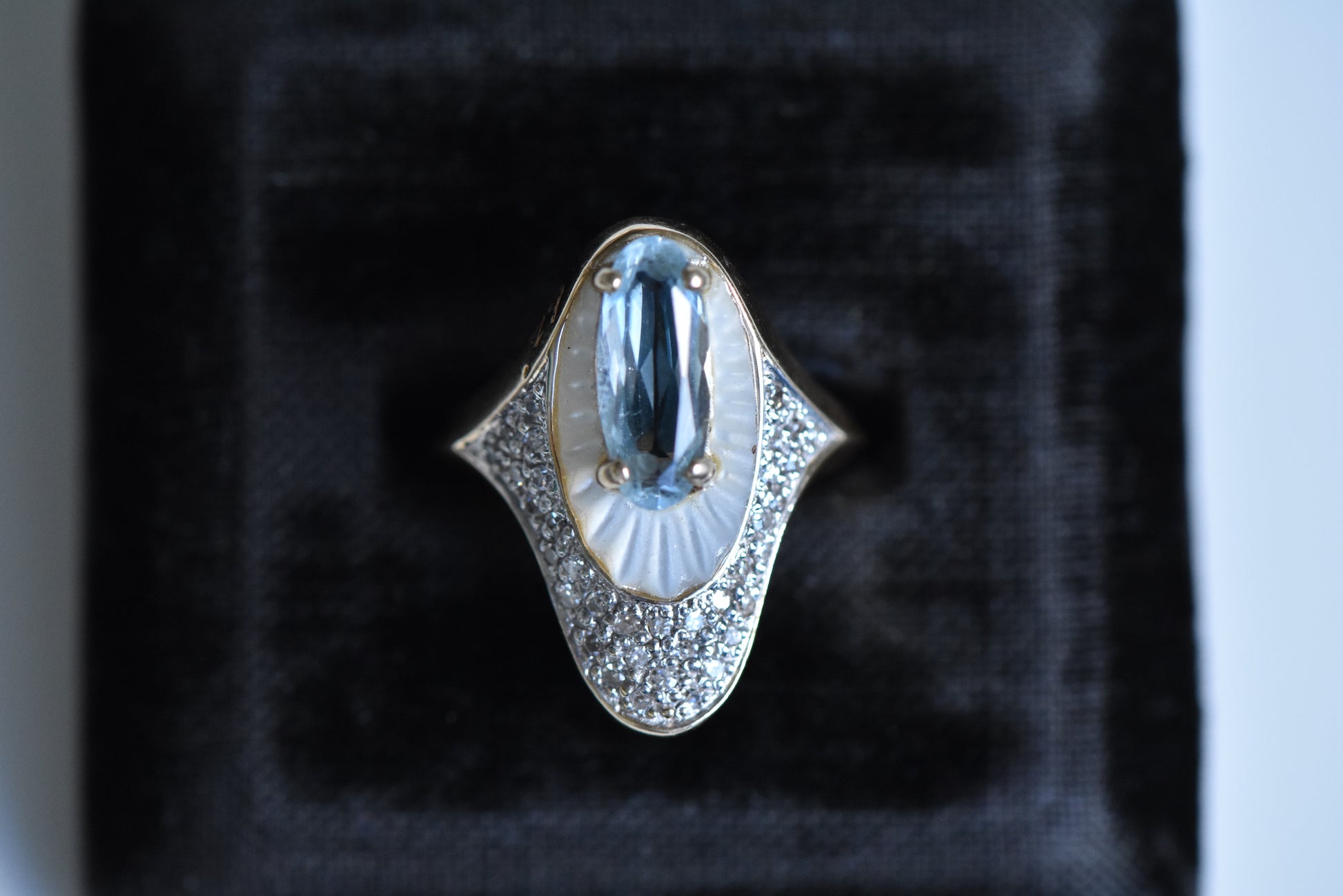 Vintage Aquamarine, Diamond and Mother of Pearl Ring