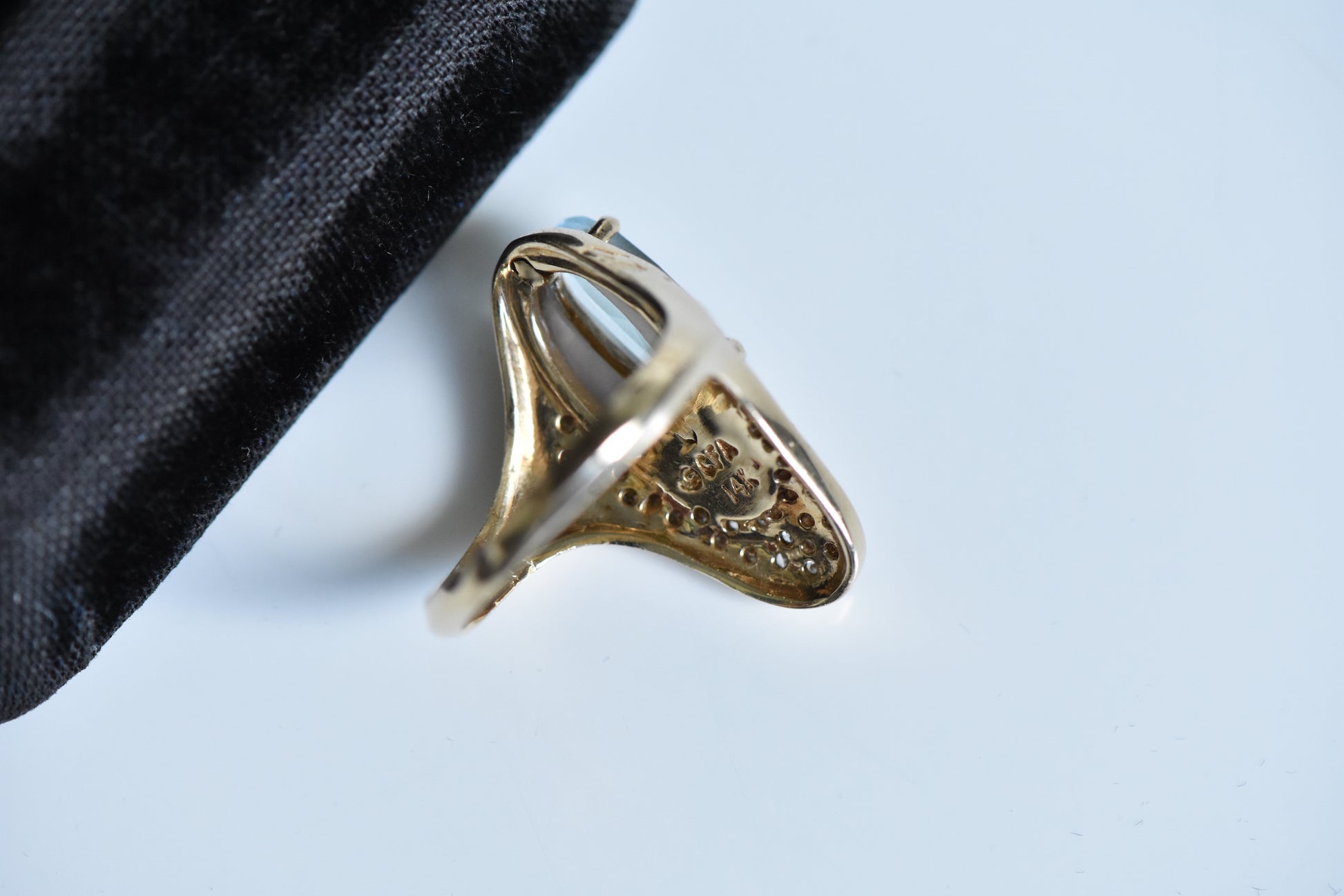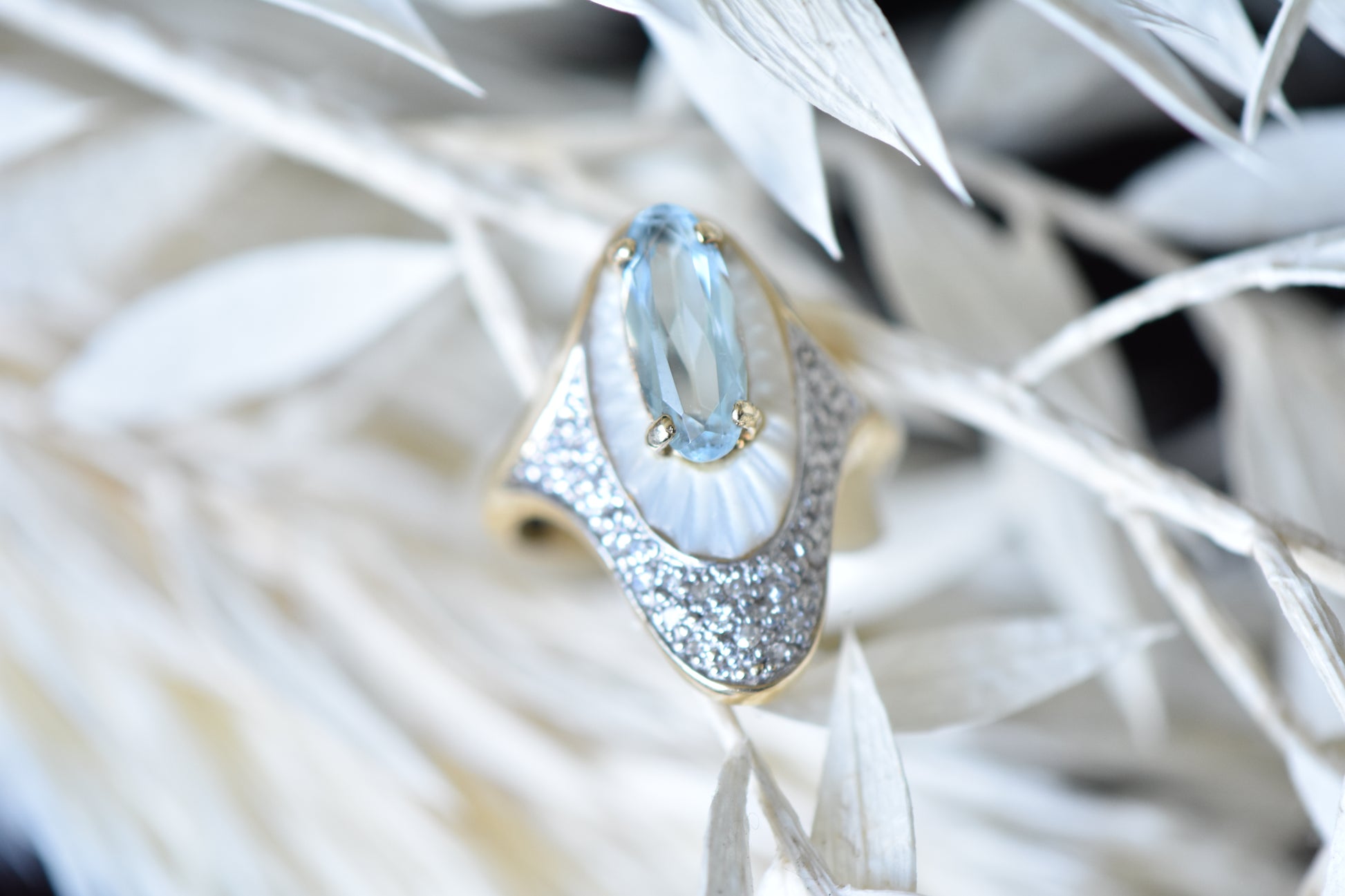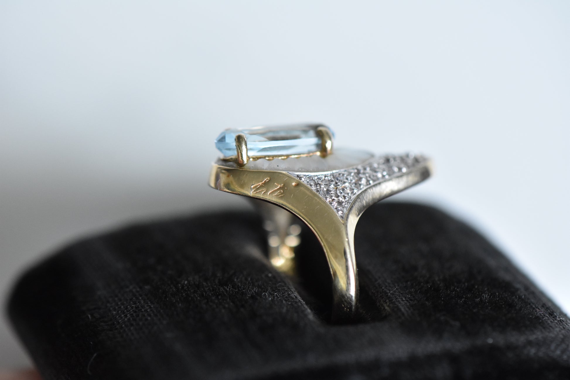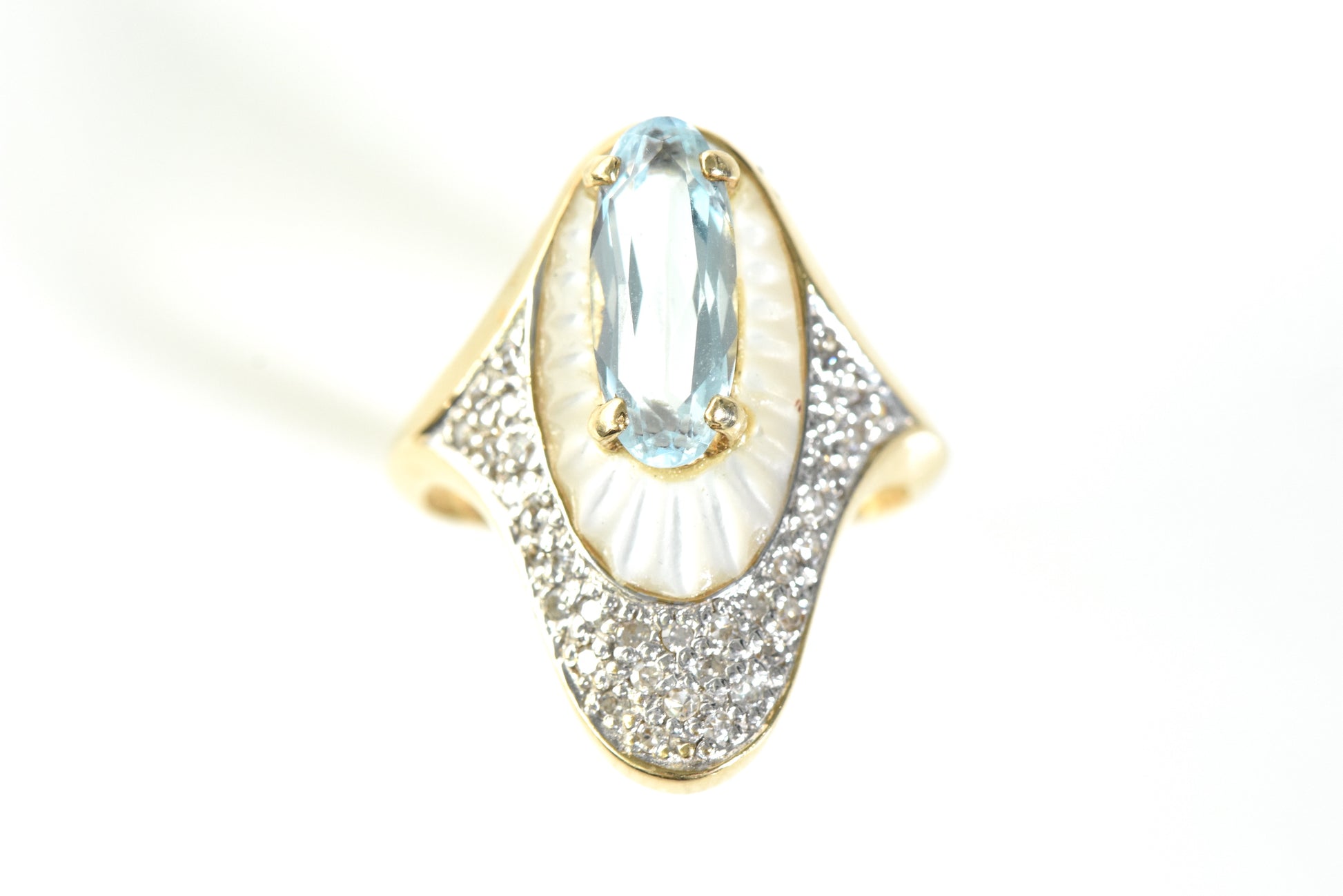 Vintage Aquamarine, Diamond and Mother of Pearl Ring