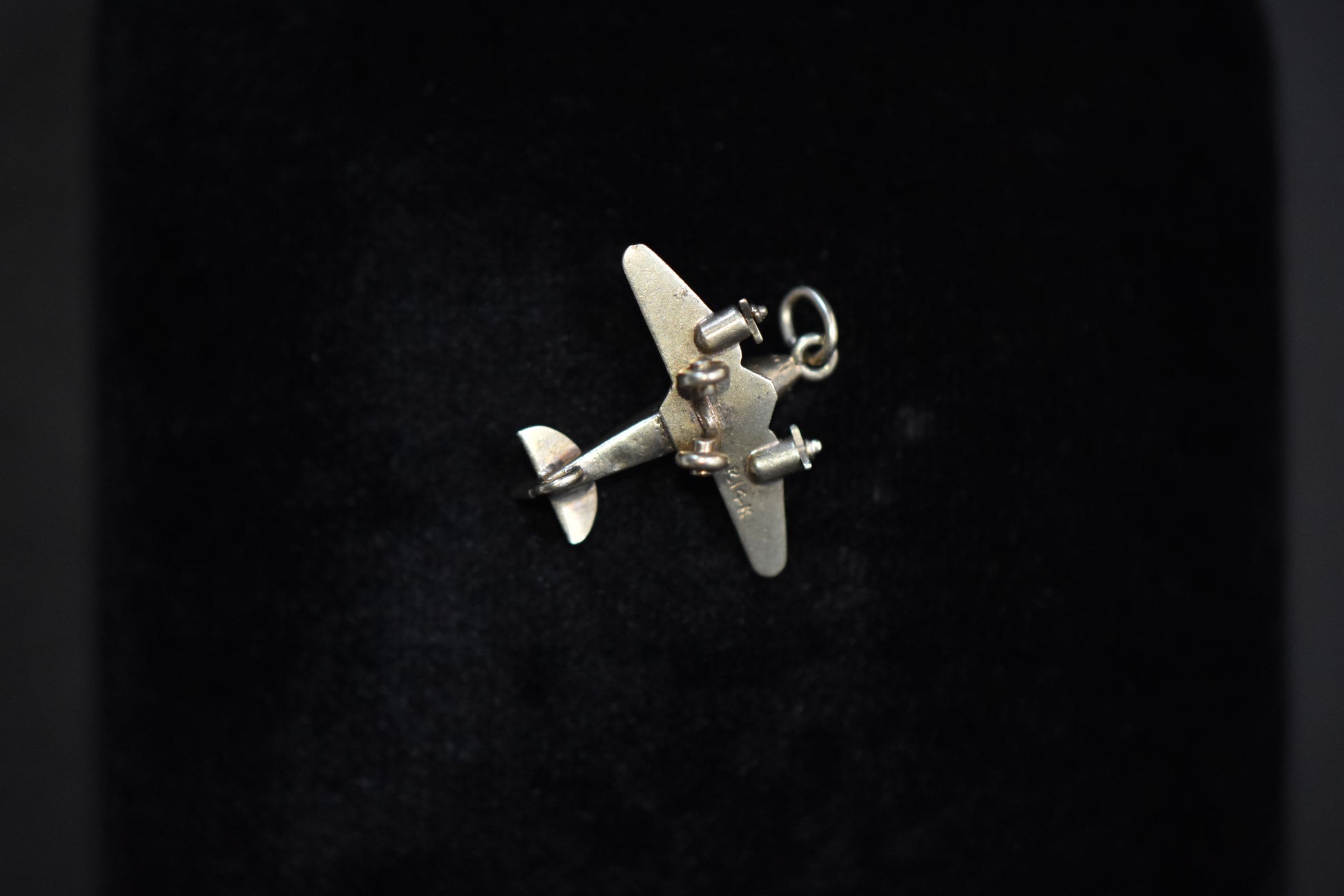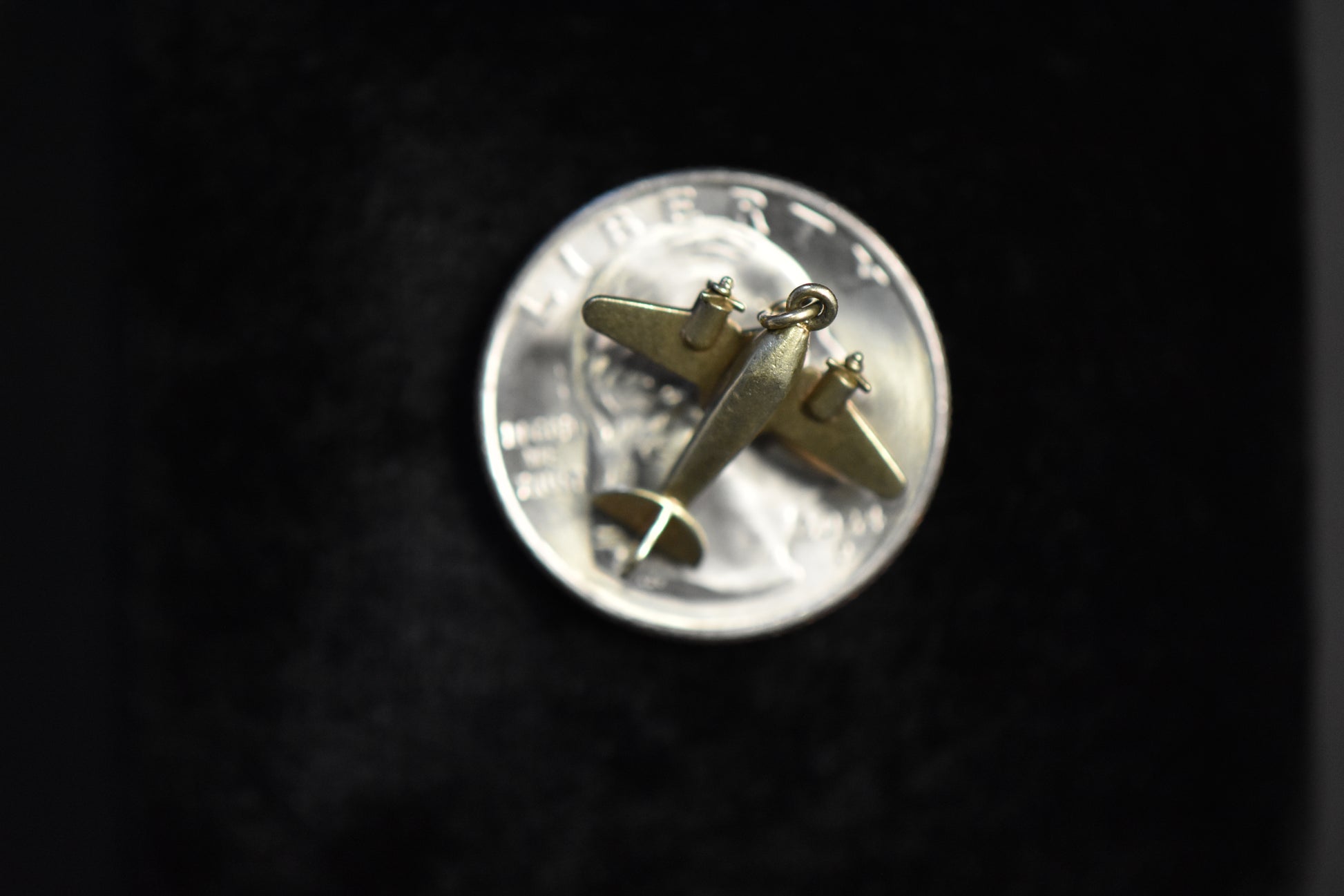 Vintage propellor airplane charm crafted in 14K yellow gold.