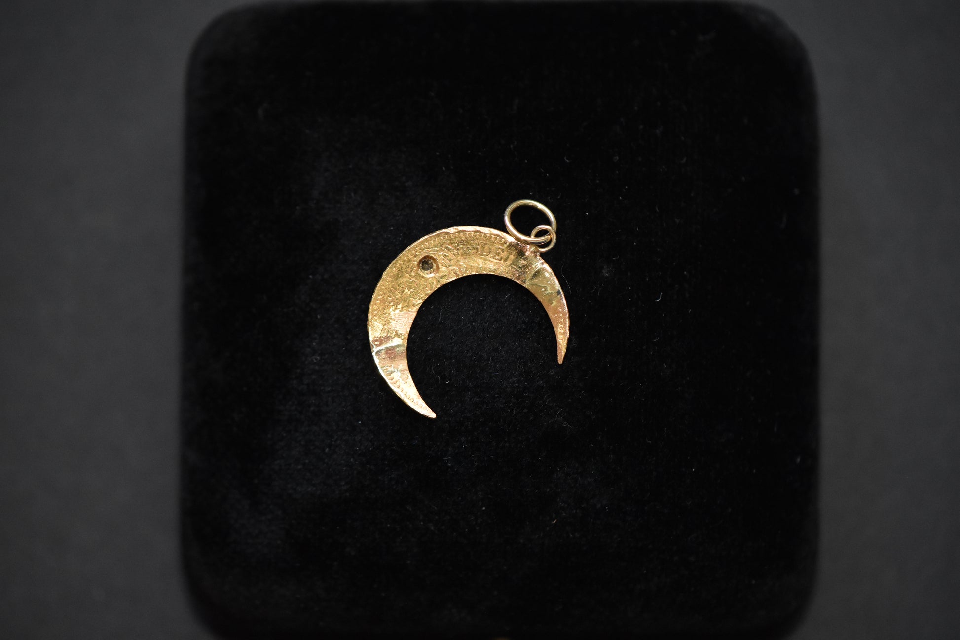 Antique 22K Deutsch Coin and Diamond Crescent Moon Pendant