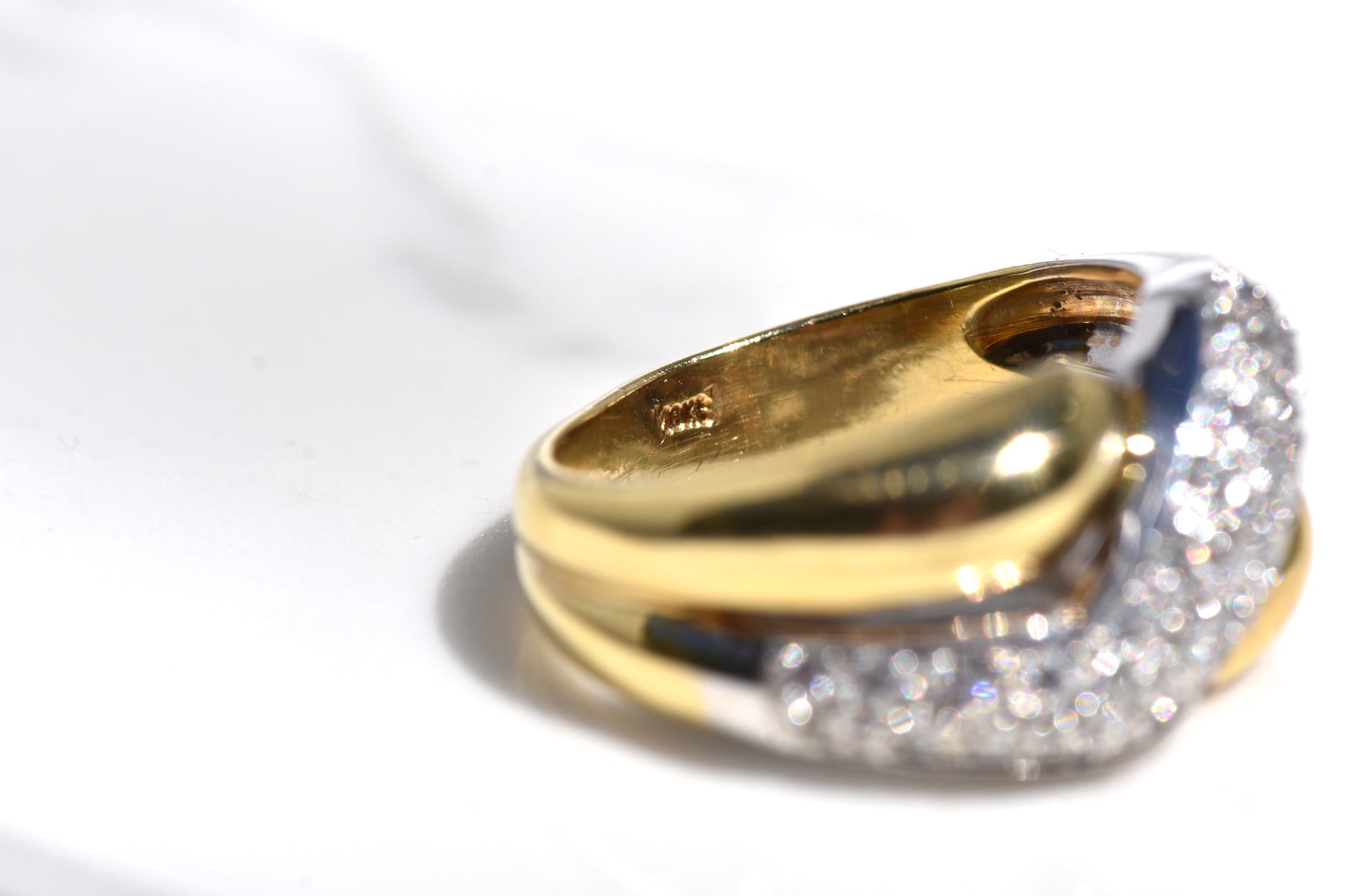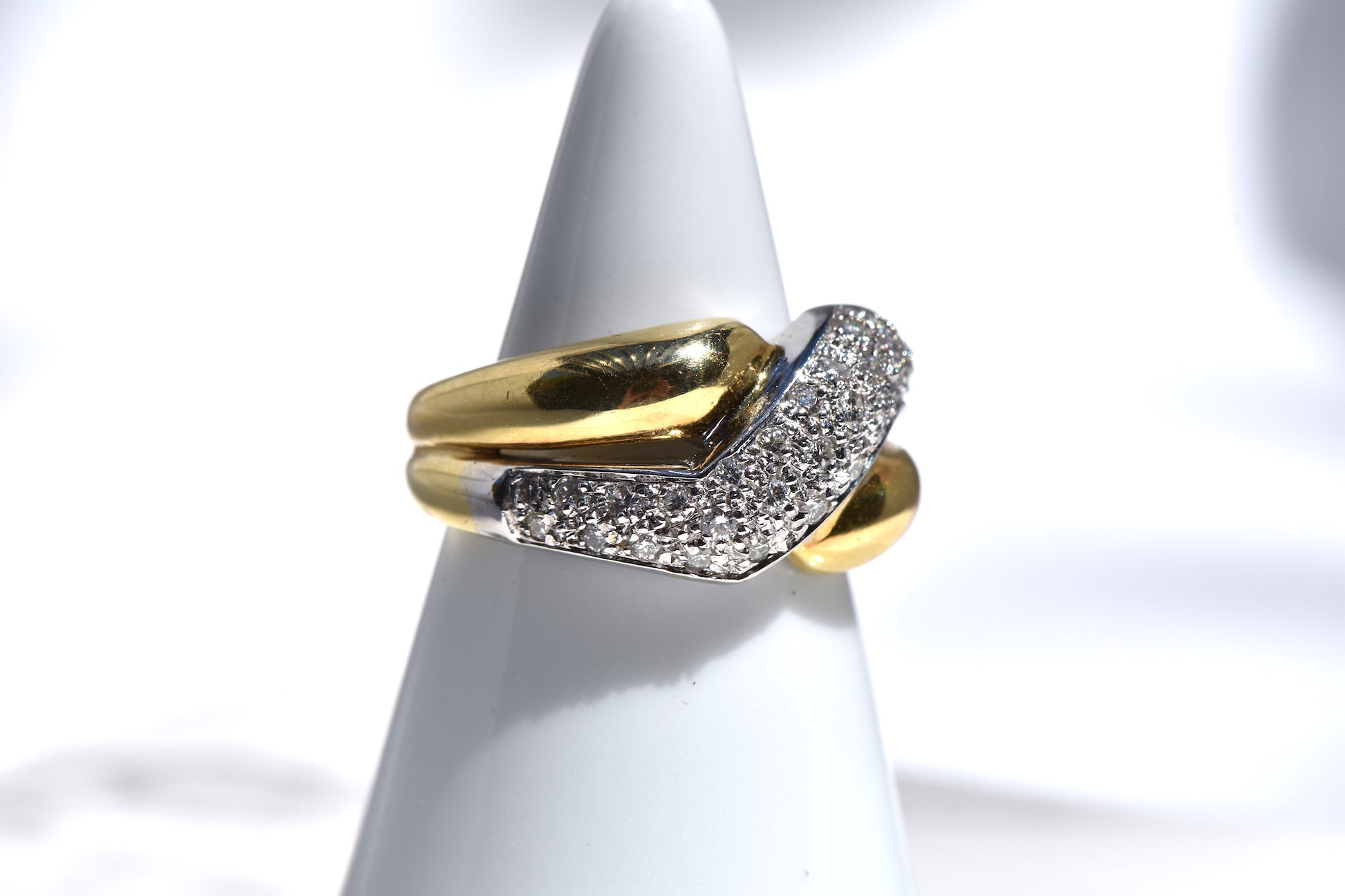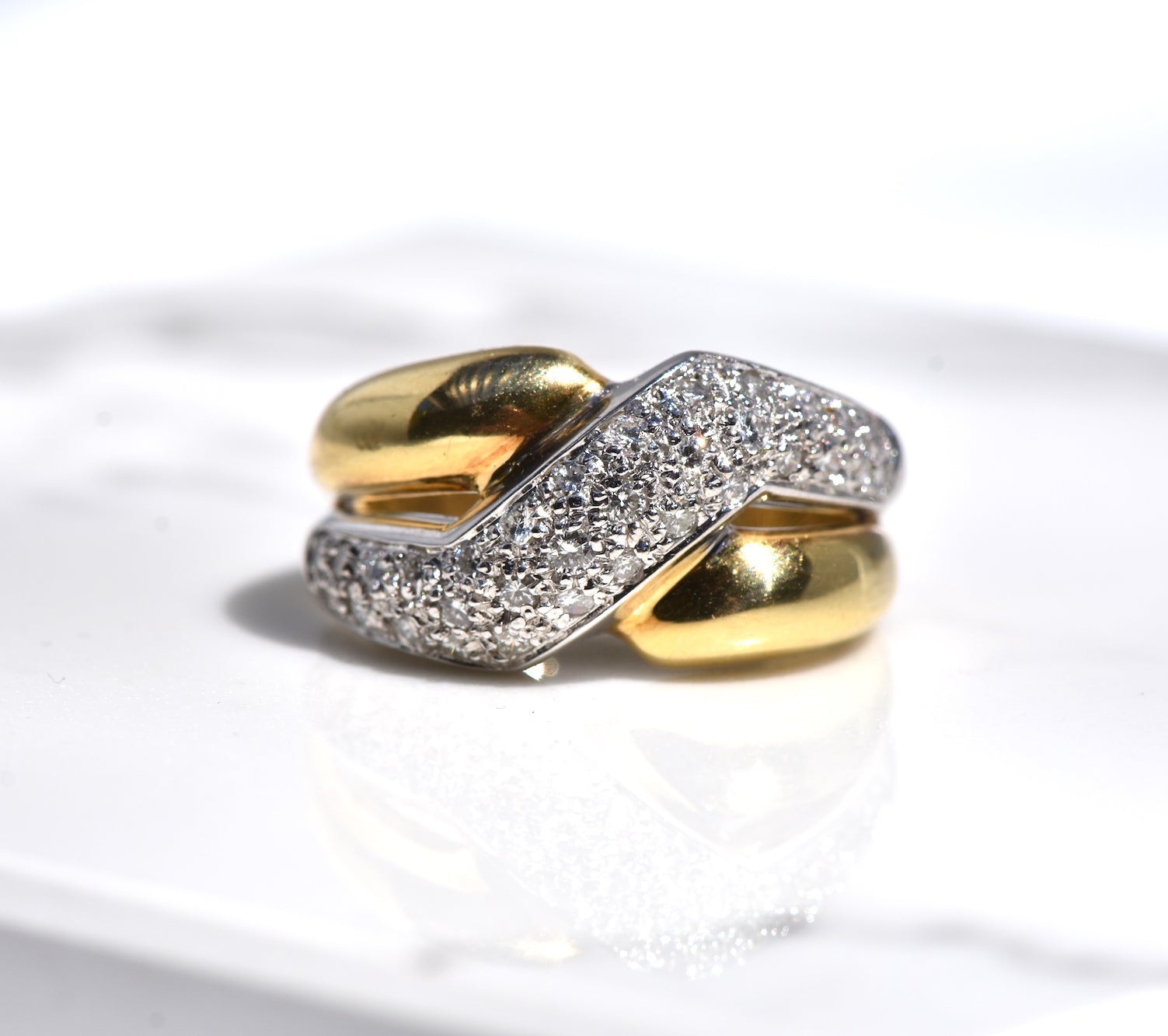 | Estate Pavé Diamond Bypass X Ring in 18K Gold |