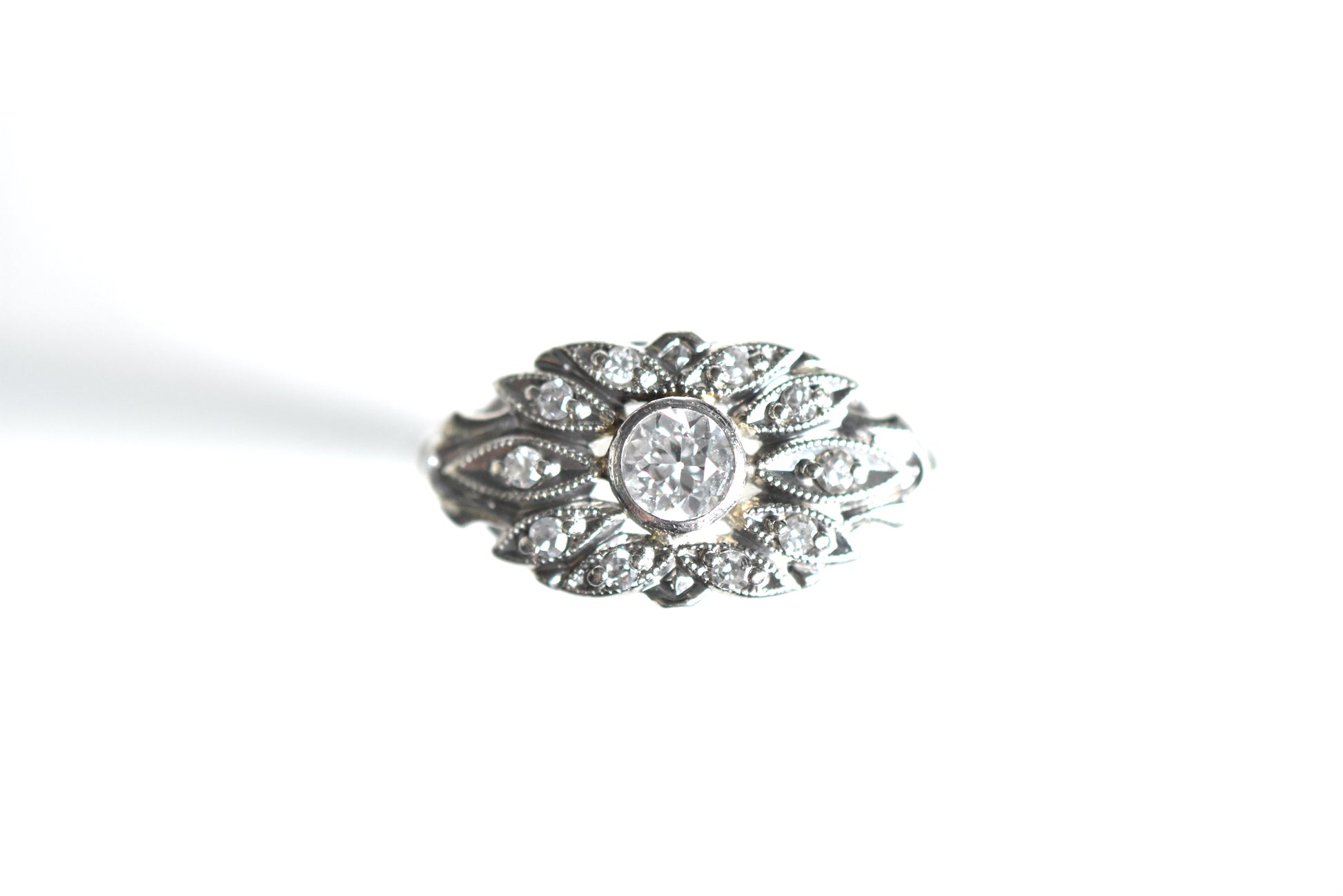 Art Deco (c.1920-1930) Stylized Flower Diamond Ring